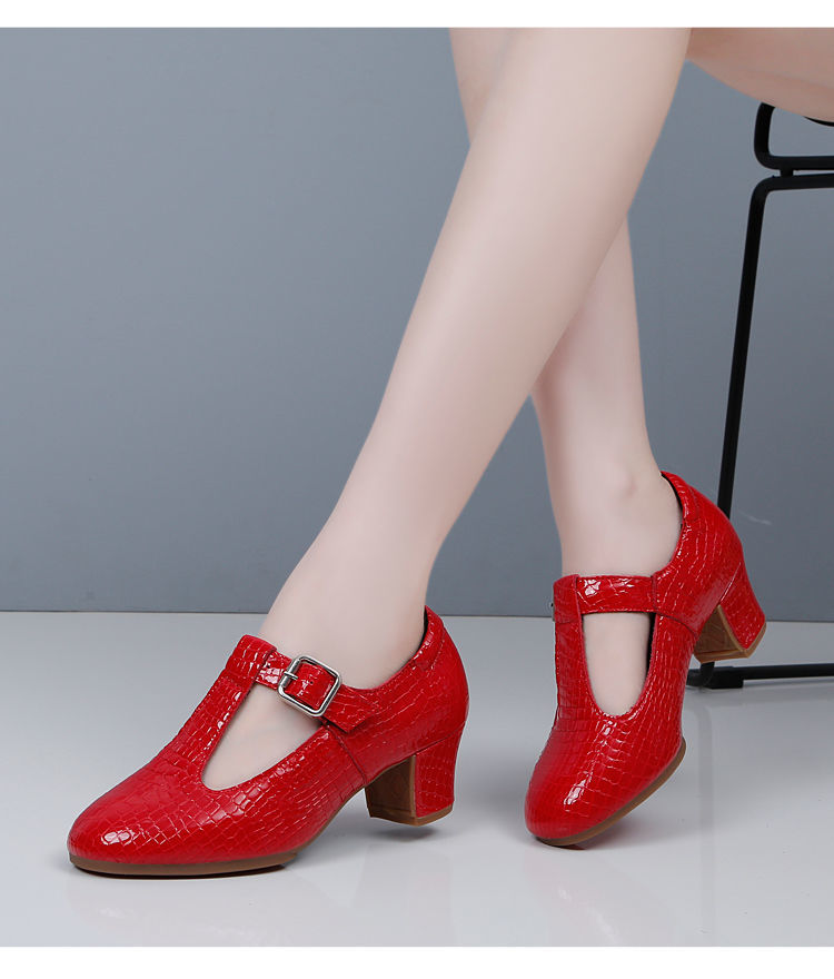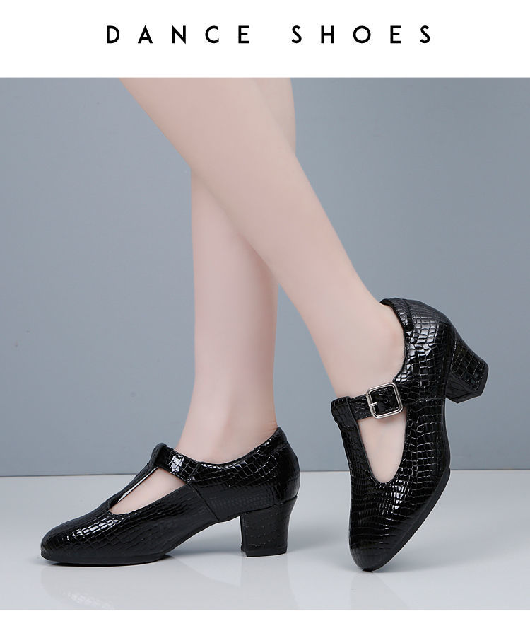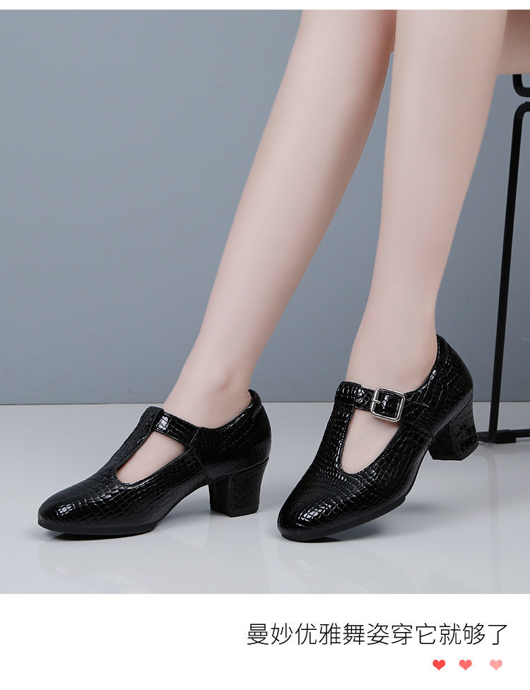夏季真皮舞蹈鞋女外穿新款跳舞鞋中跟广场舞鞋妈妈软底摩登水兵舞
