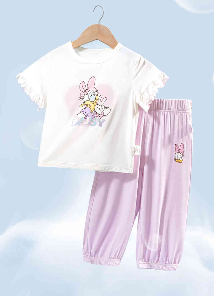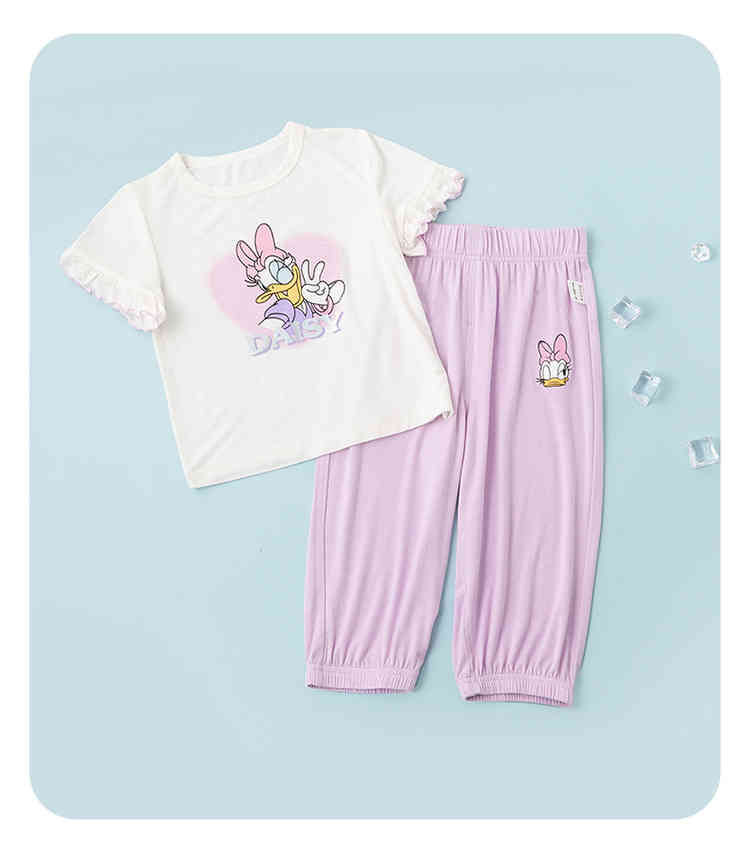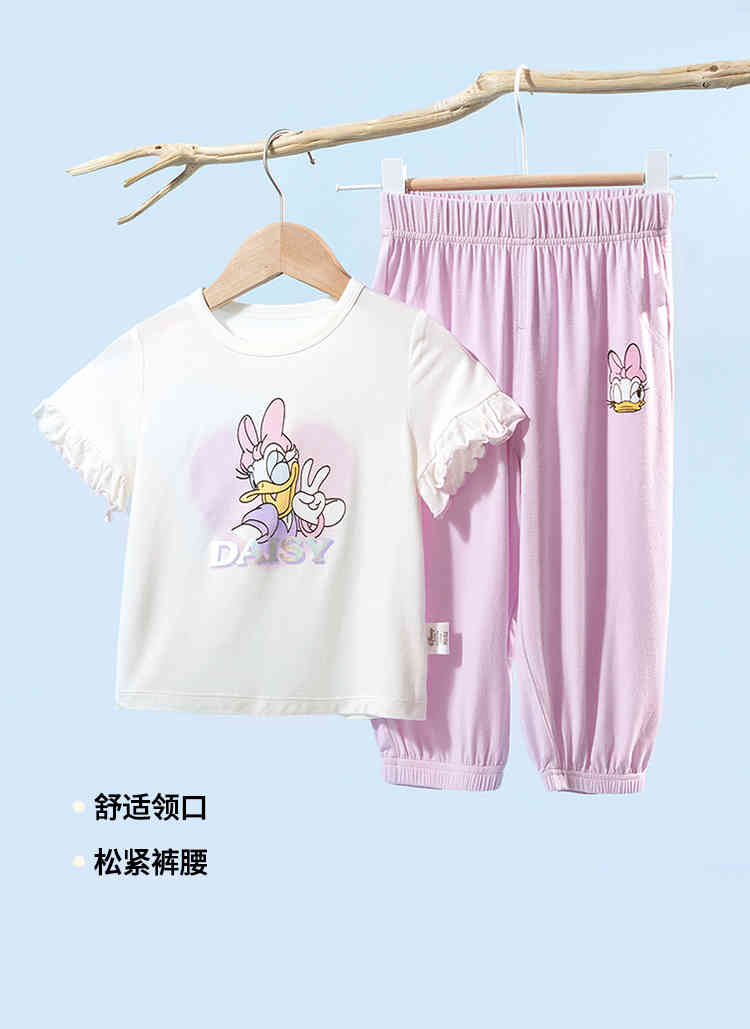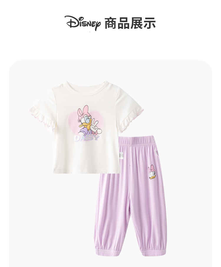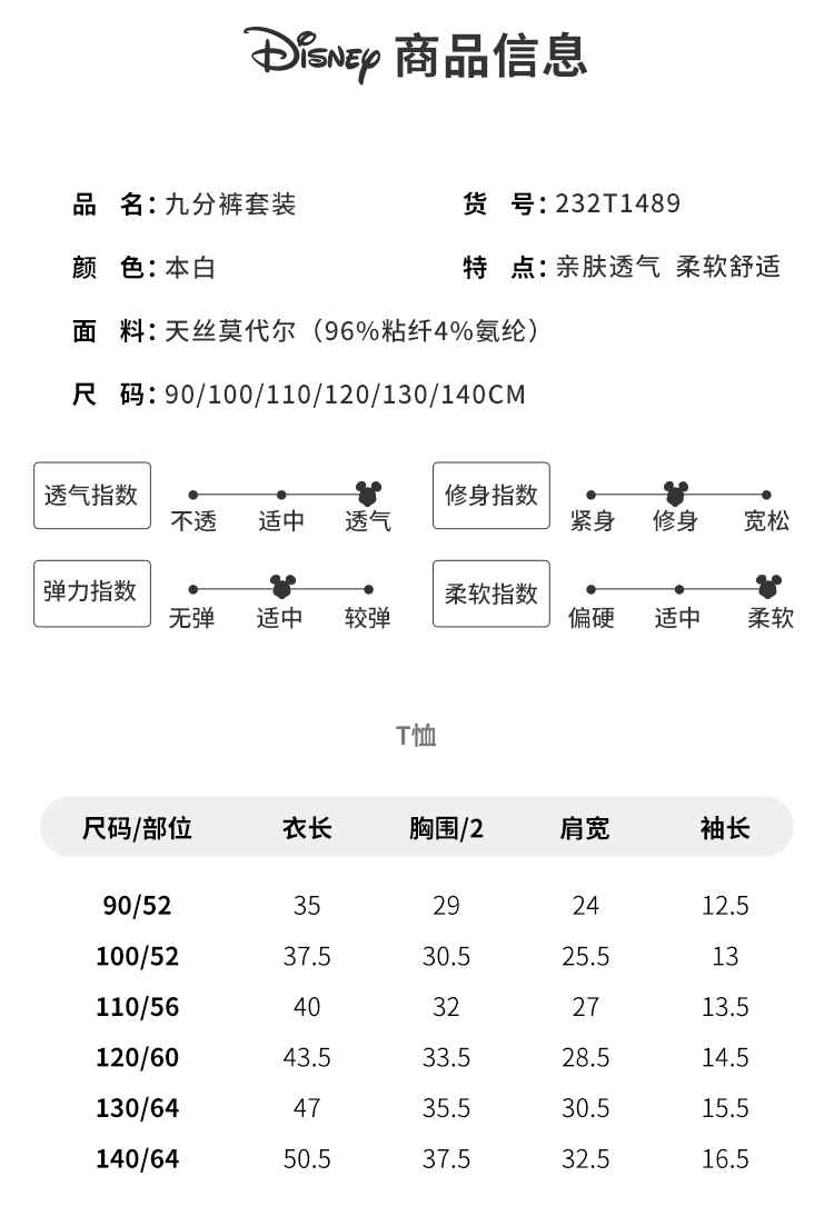 迪士尼童装女童短袖t恤九分裤套装夏季中小童天丝莫代尔两件套232T1489