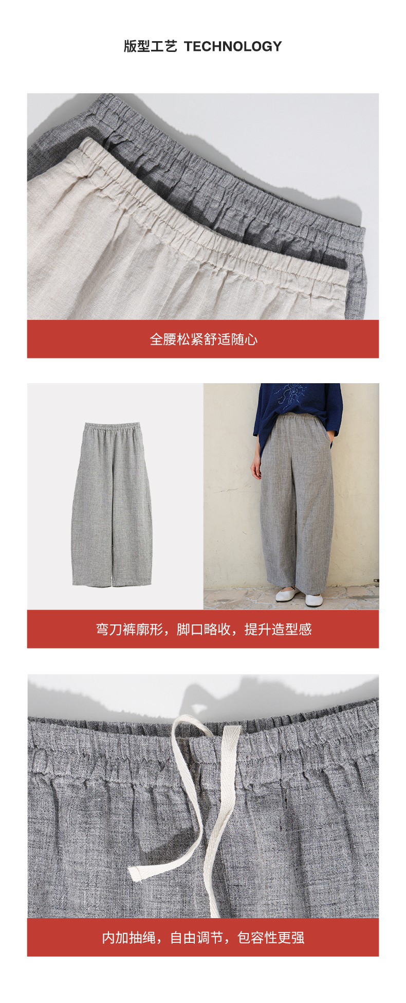 绽放旅行女装240朵/全腰松紧内加抽绳显瘦香蕉裤舒适弯刀裤休闲裤