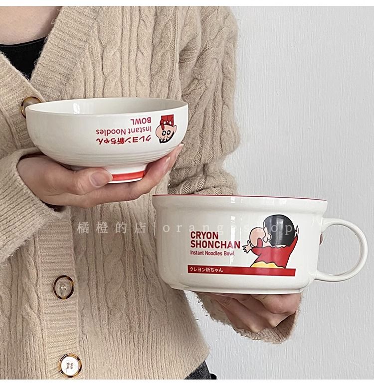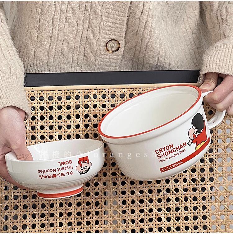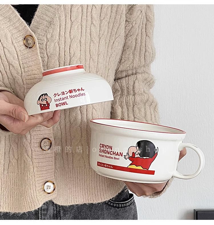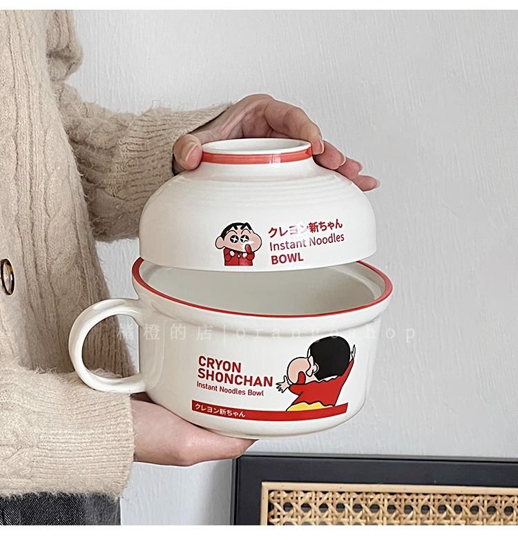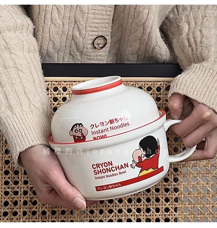日系卡通蜡笔小新泡面碗带盖陶瓷碗家用少女心汤面碗宿舍学生用