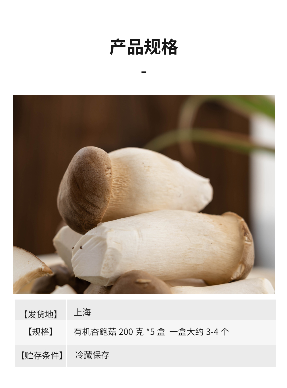 【规格】有机杏鲍菇200克*5盒(一盒大约3-4个)
