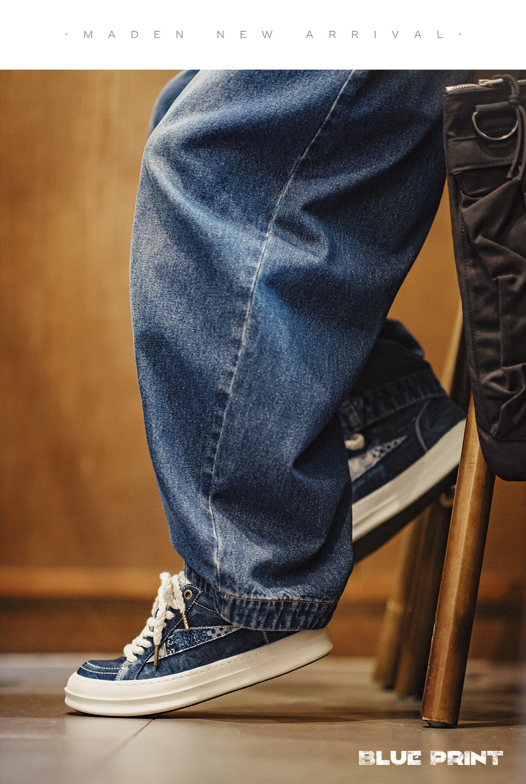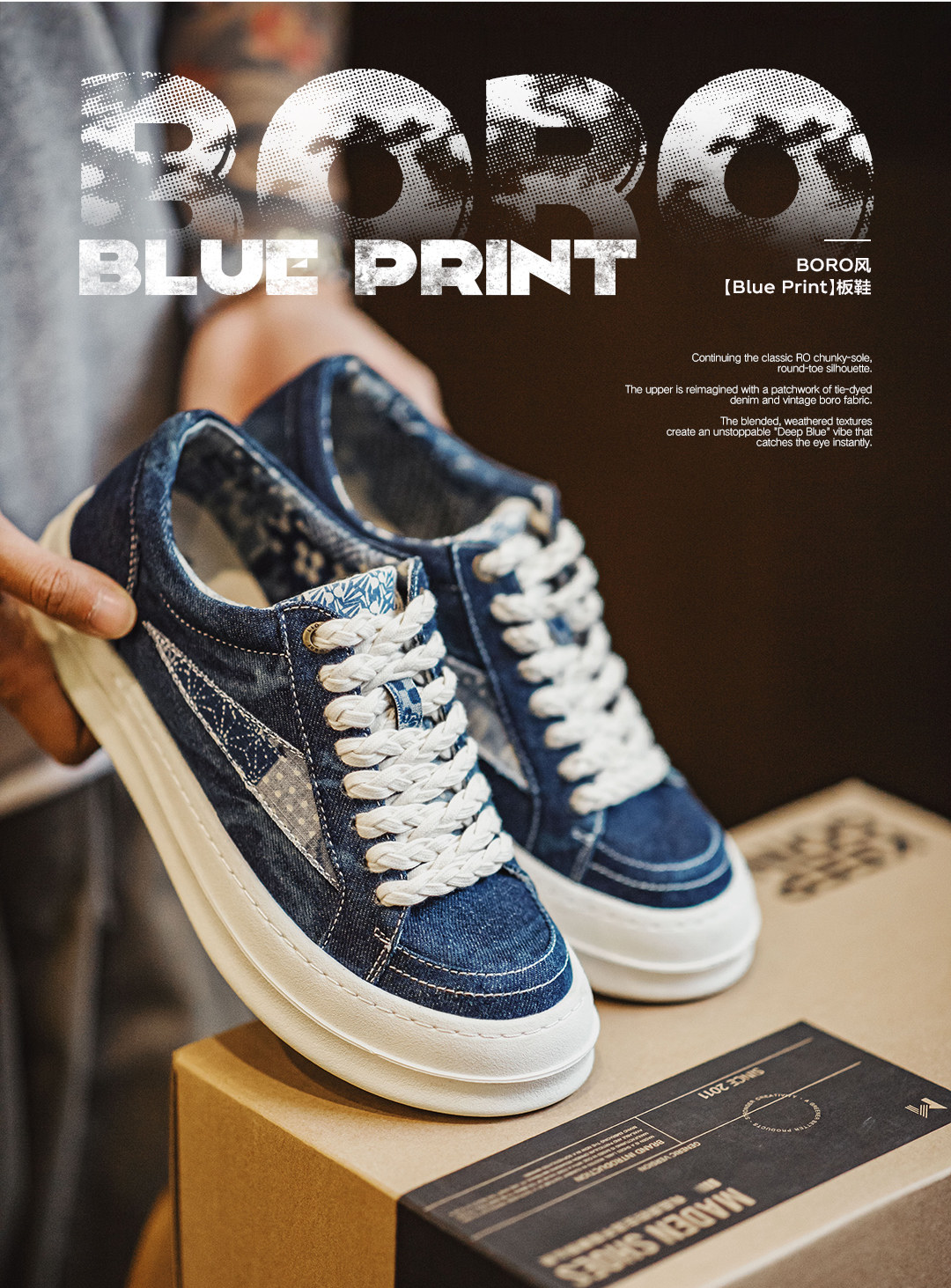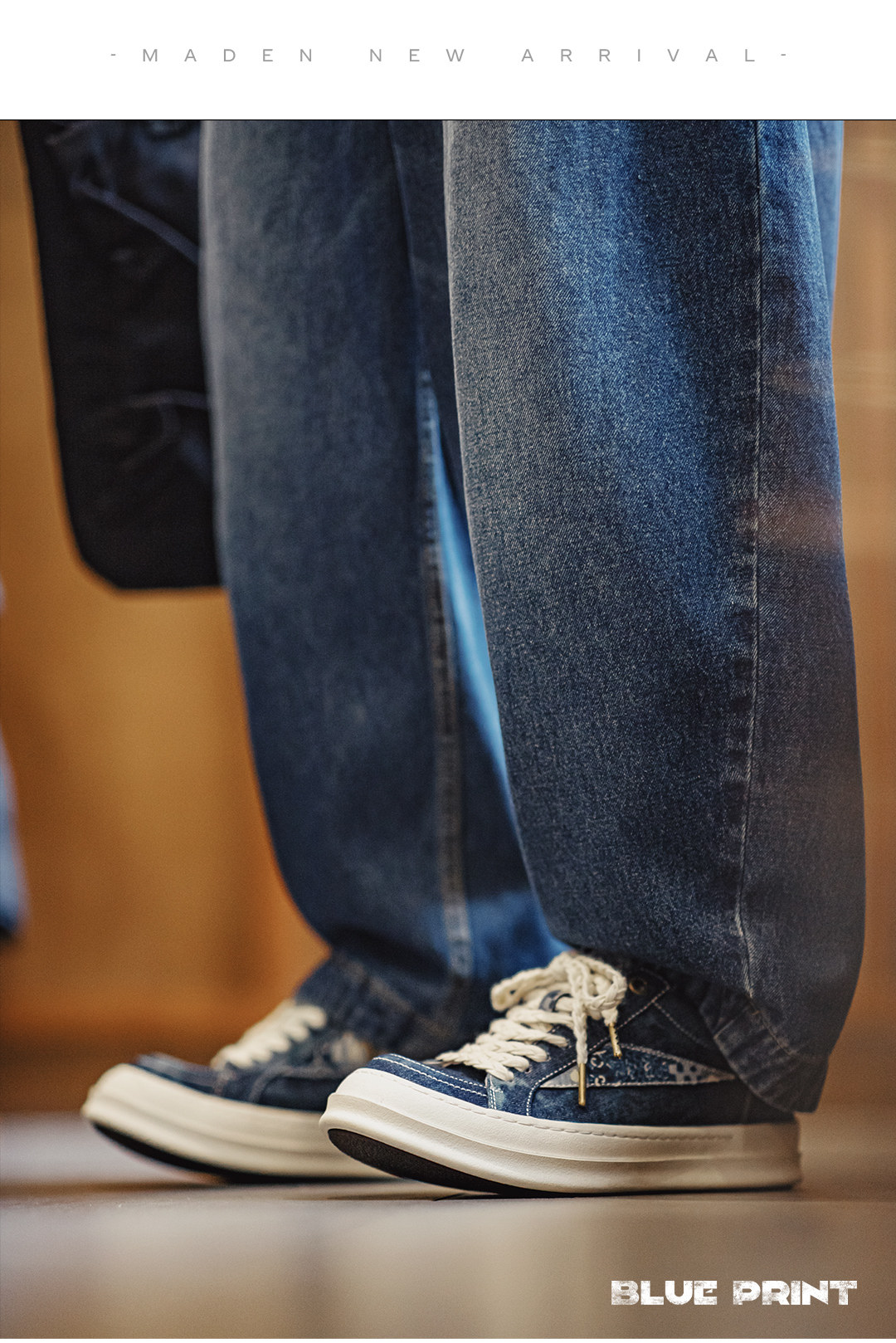 马登RO板鞋男士扎染帆布鞋厚底隐形增高日系2026新款复古休闲鞋子