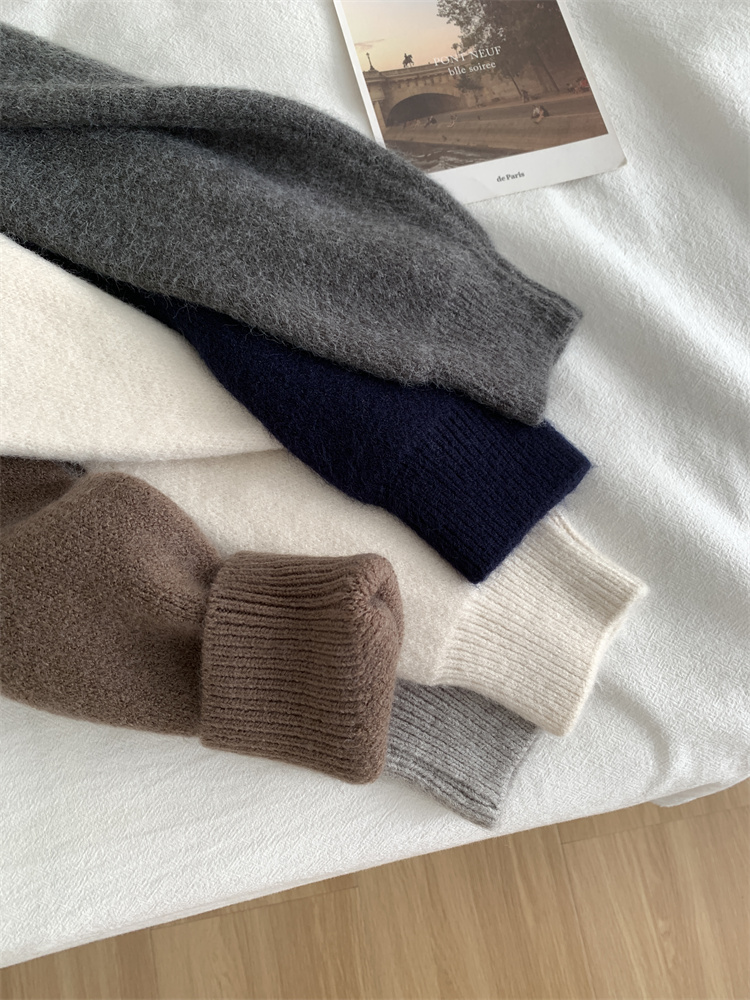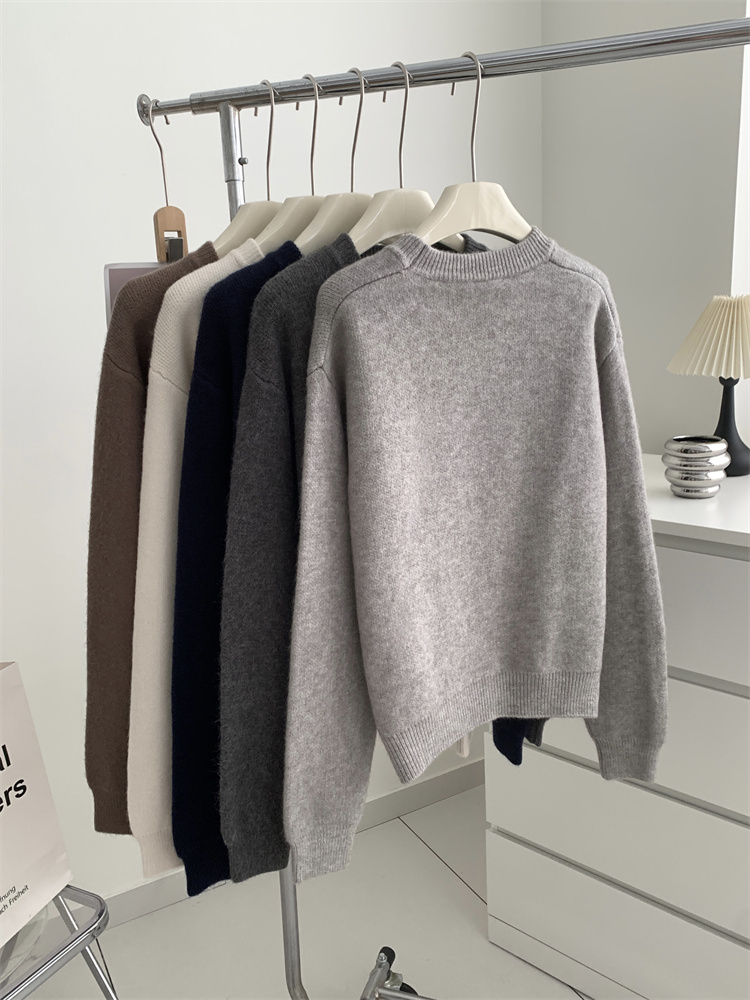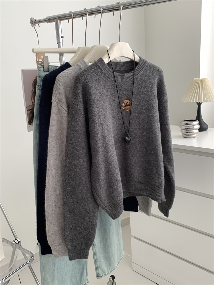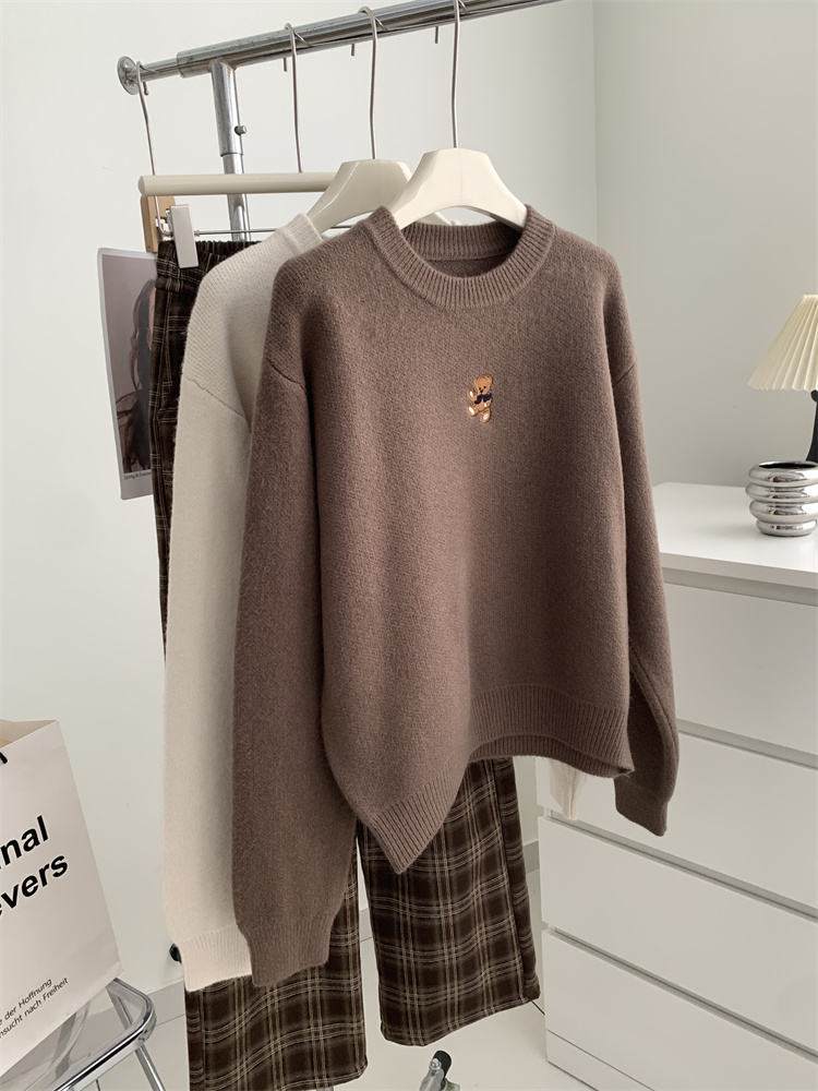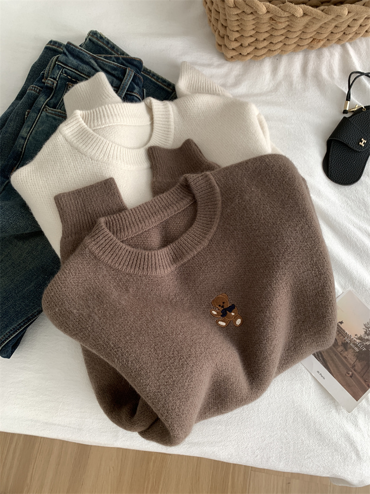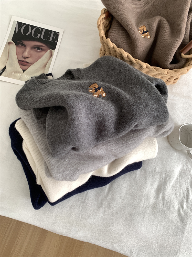 厚实软糯!小熊刺绣套头毛衣女宽松韩版灰色长袖针织衫秋冬保暖毛衣!