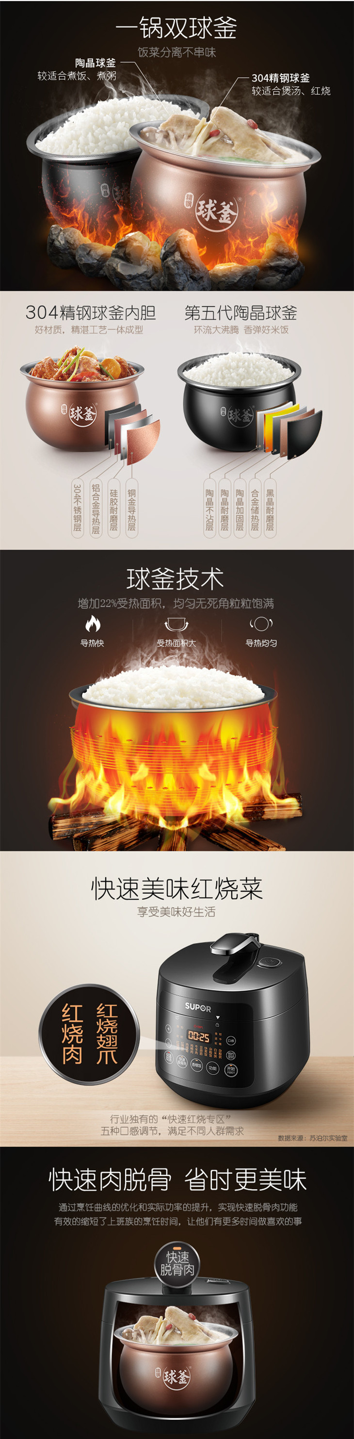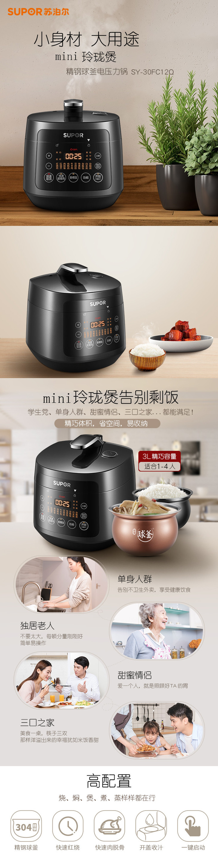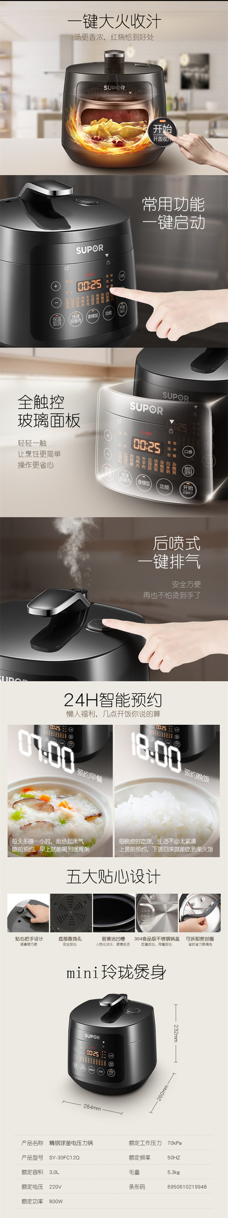 苏泊尔SUPOR精钢球釜电压力锅SY-30FC12Q 双胆3L 24小时预约 1-4人
