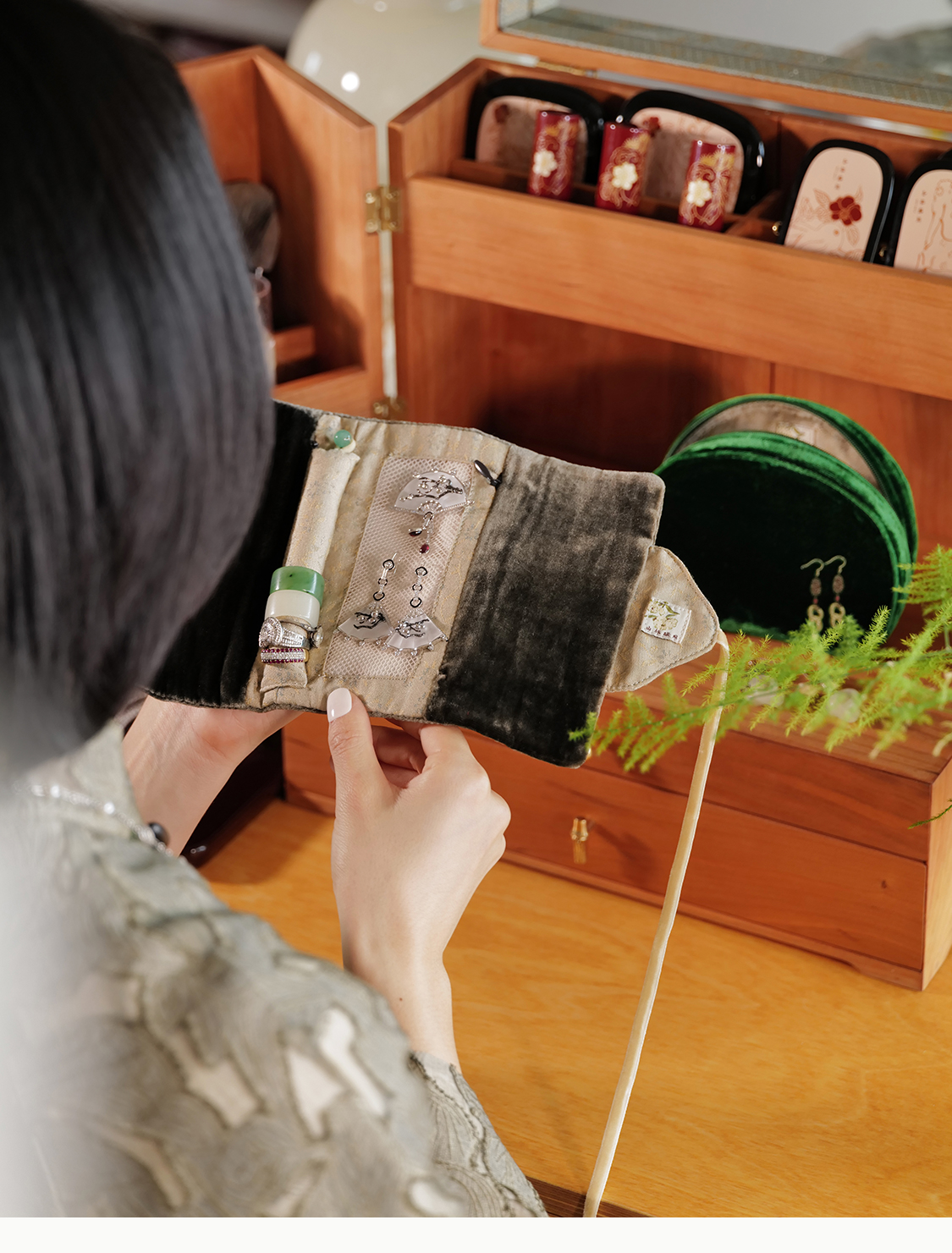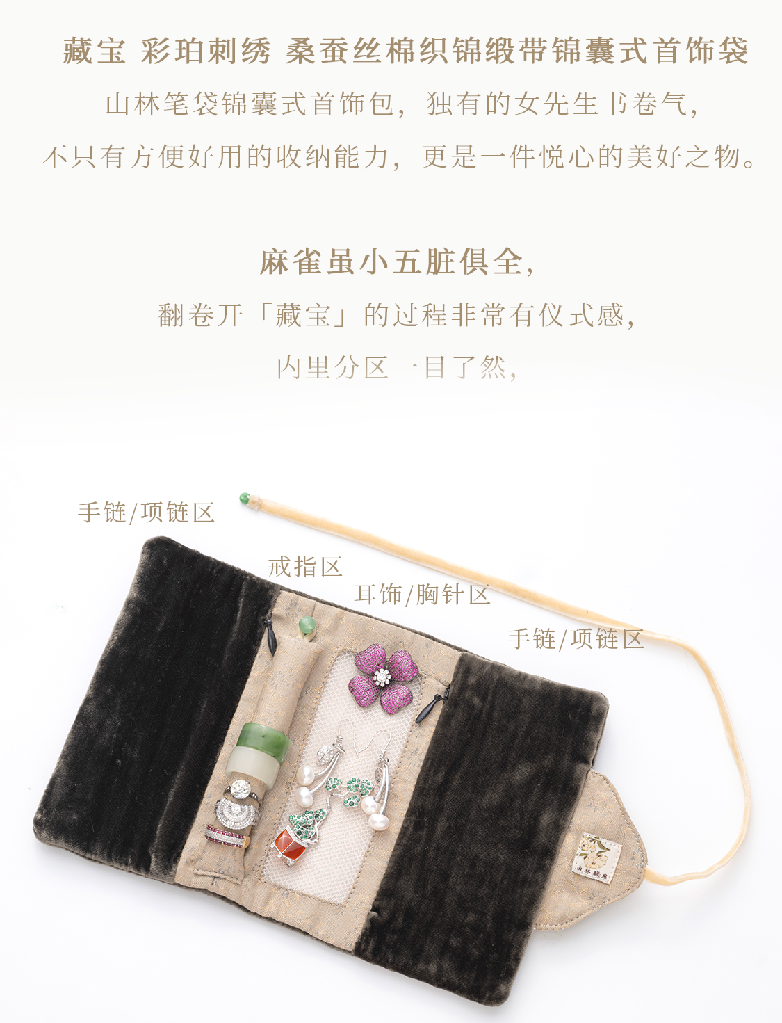 藏宝 丝绒织锦缎带便携首饰袋两款 山林曦照