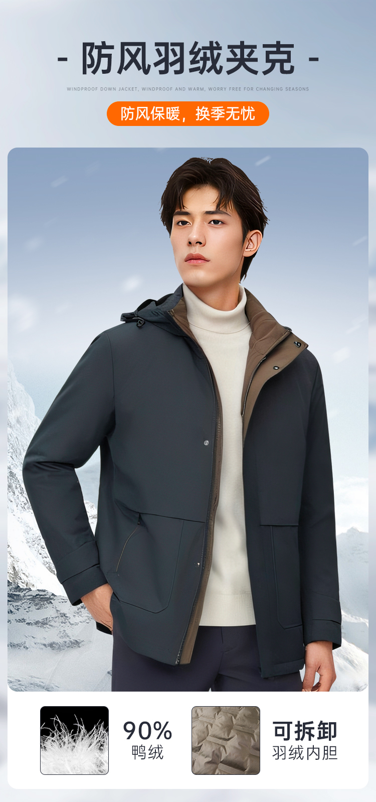 【可拆卸内胆防风羽绒夹克】羽绒外套夹克 防风保暖夹克上衣YT410