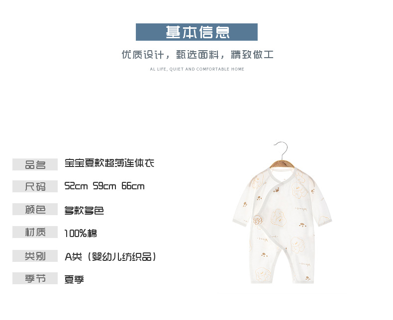 【新生儿纯棉薄款无骨连体衣】夏季婴儿衣服哈衣长袖宝宝夏款空调服