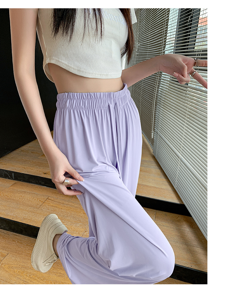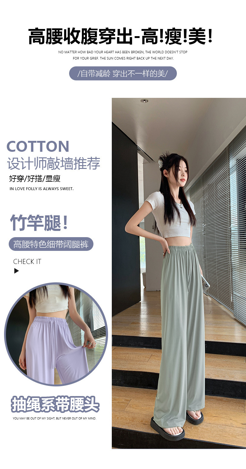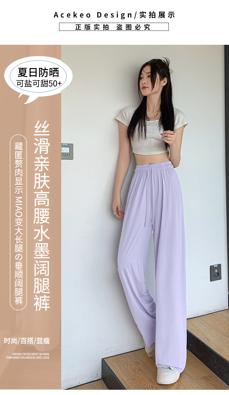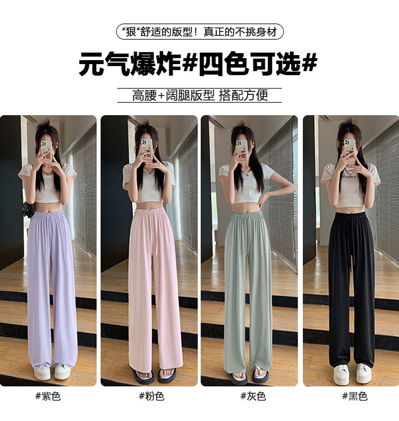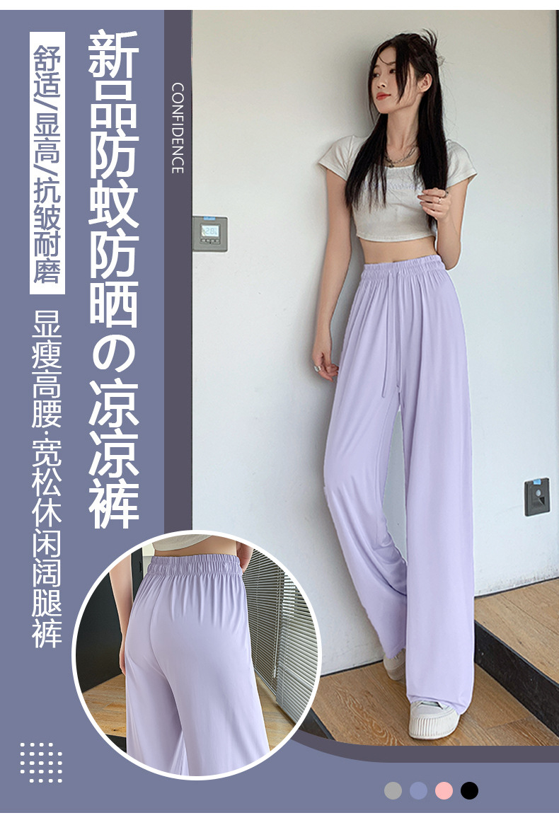 【丝滑垂顺 !高腰显瘦!可盐可甜 】冰丝防晒裤女夏季薄款高腰垂坠感宽松直筒凉凉裤灰色休闲阔腿裤子