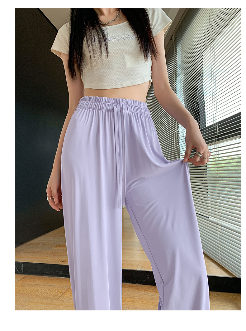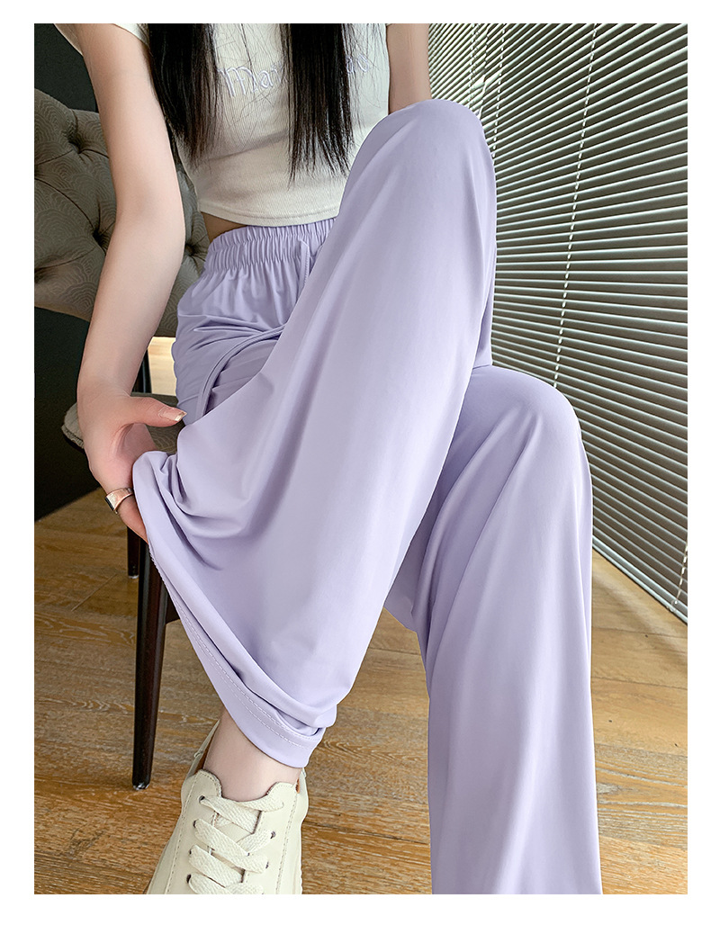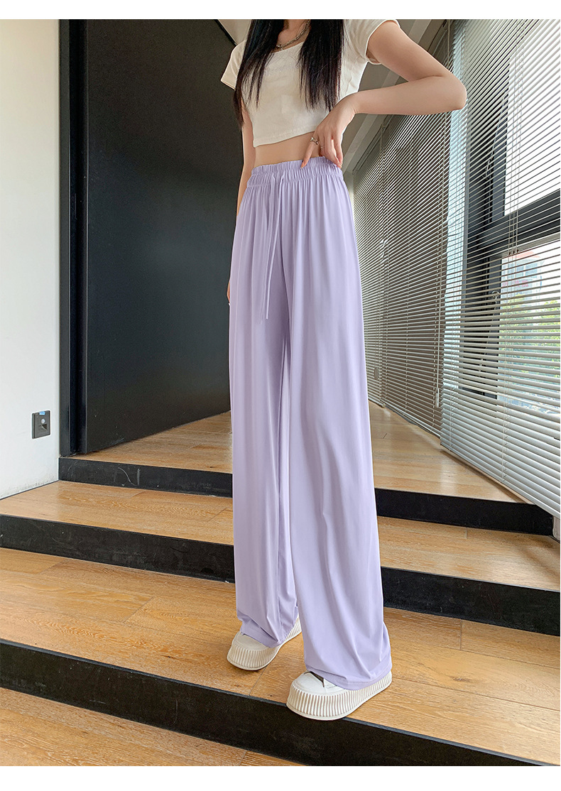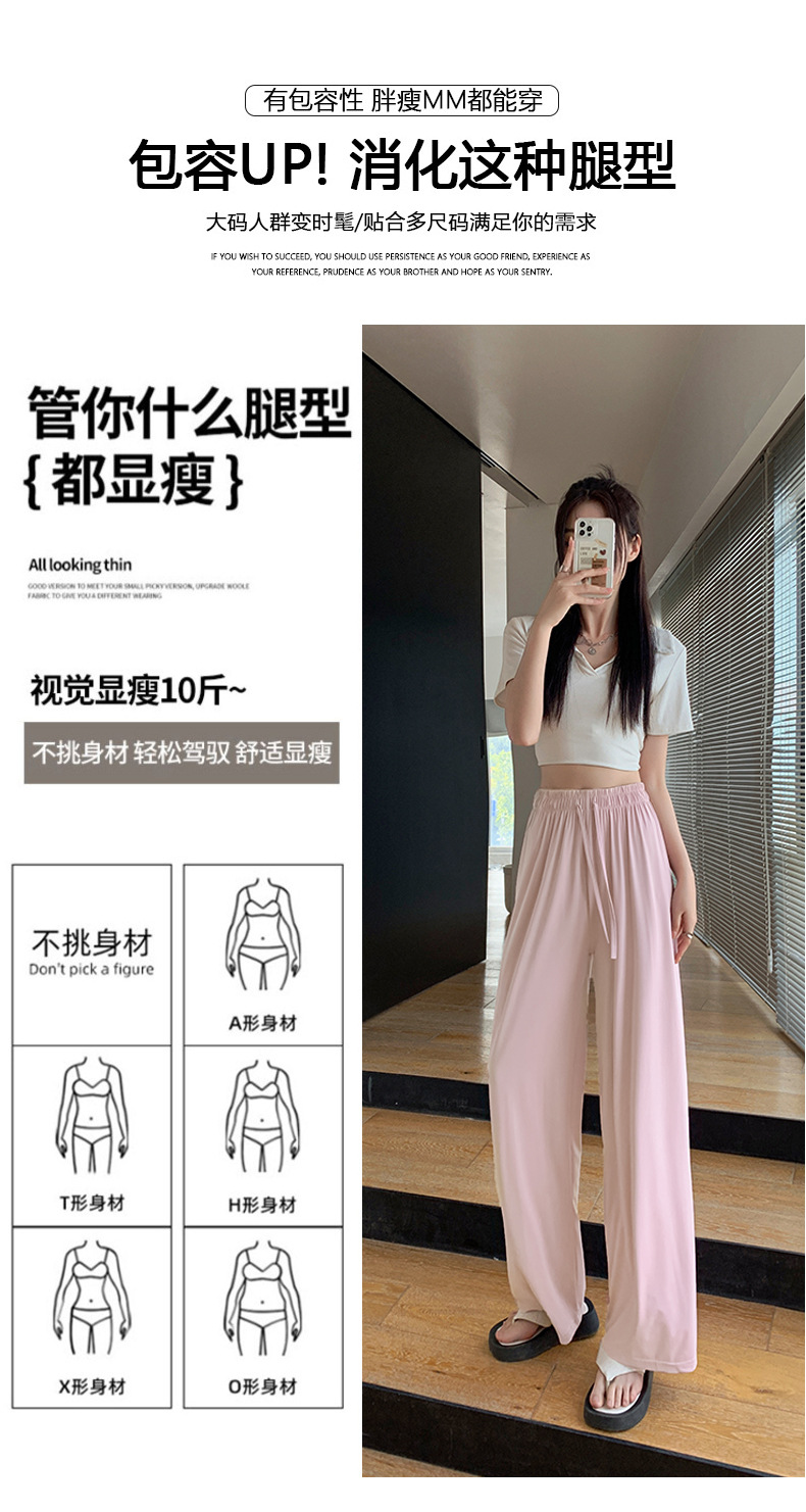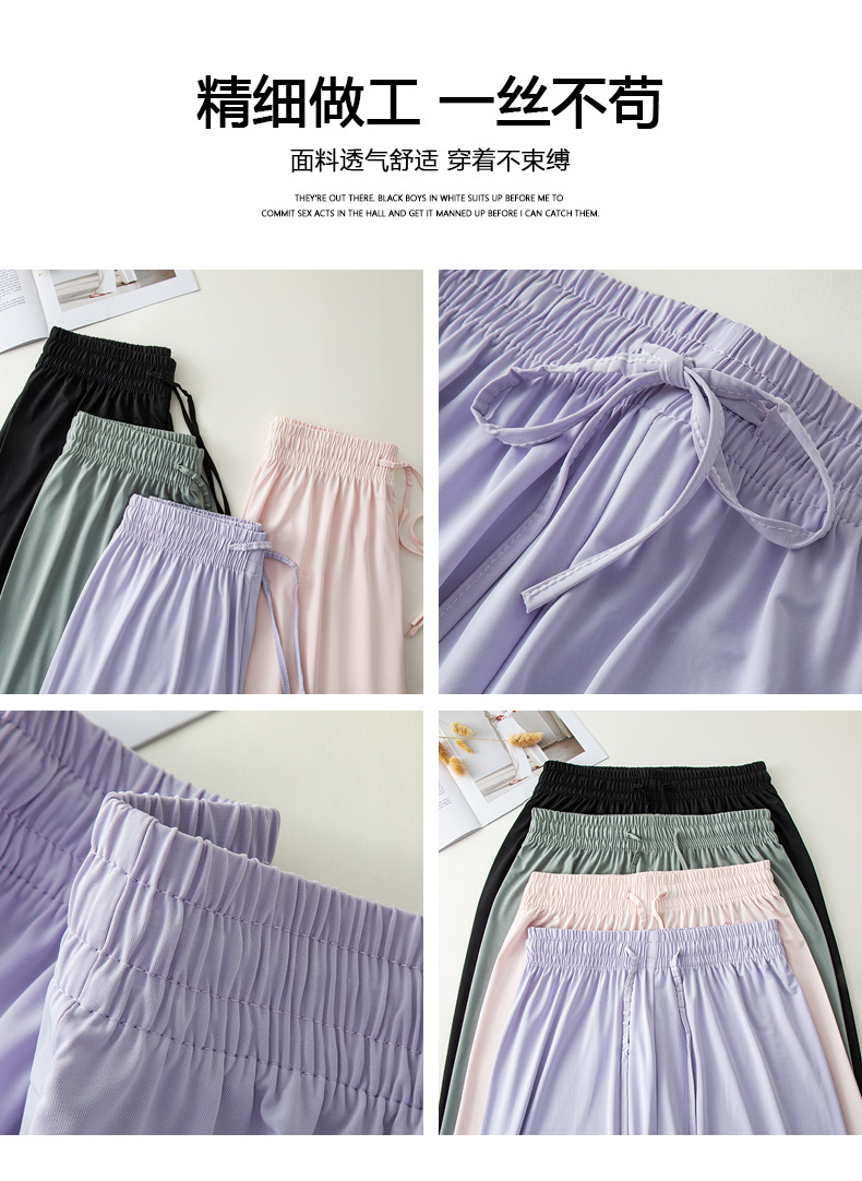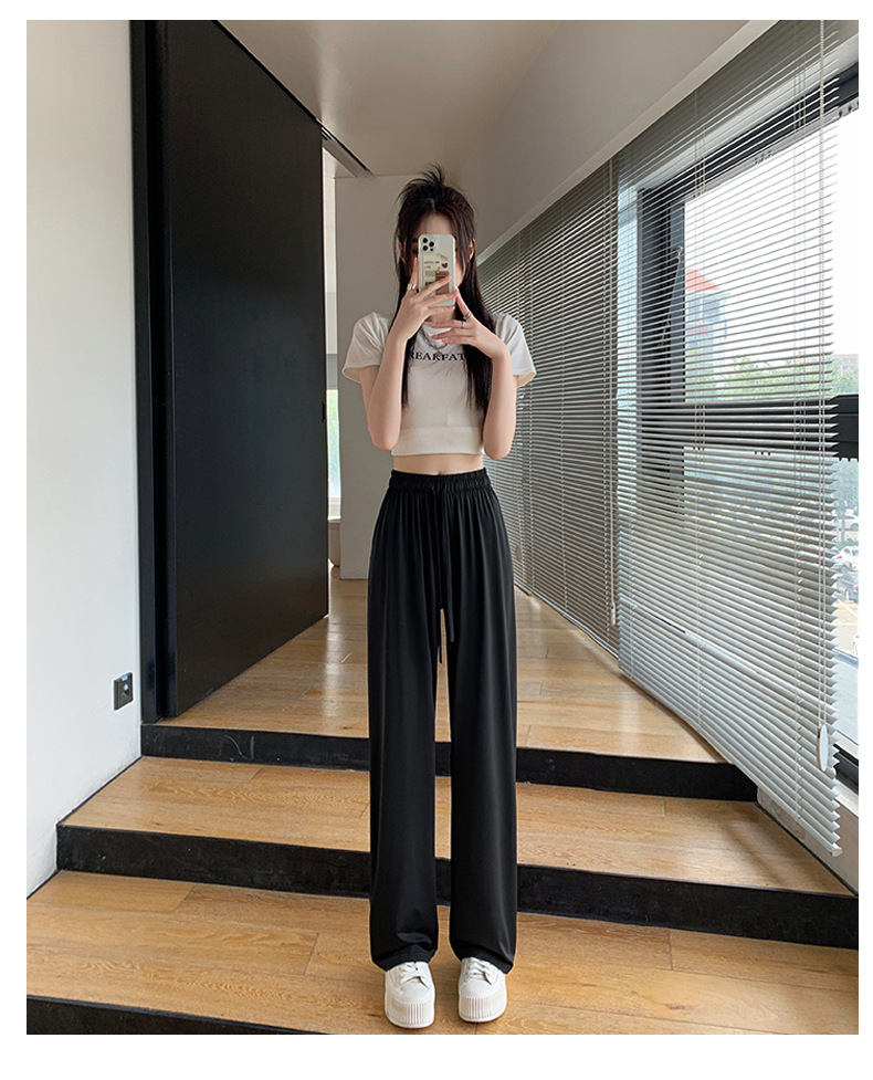 【丝滑垂顺 !高腰显瘦!可盐可甜 】冰丝防晒裤女夏季薄款高腰垂坠感宽松直筒凉凉裤灰色休闲阔腿裤子