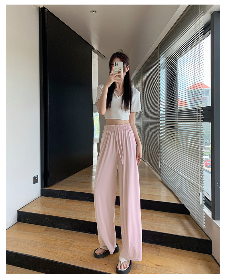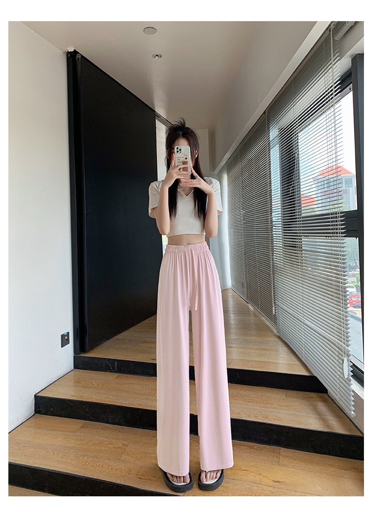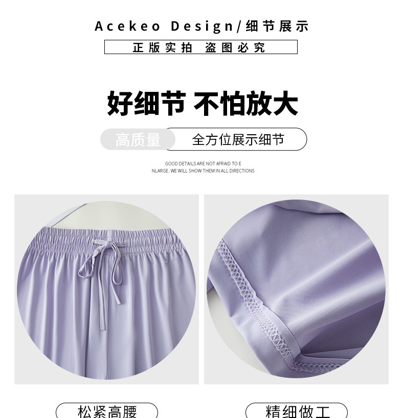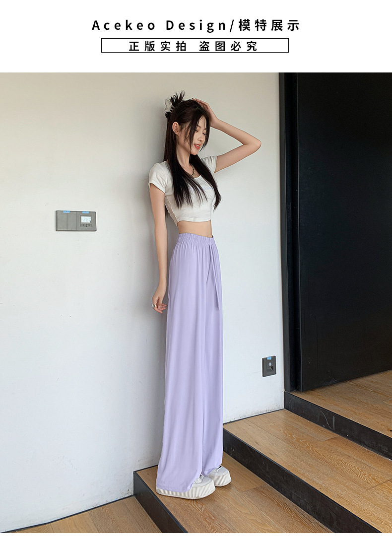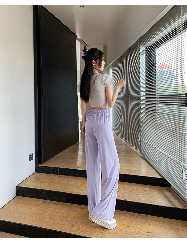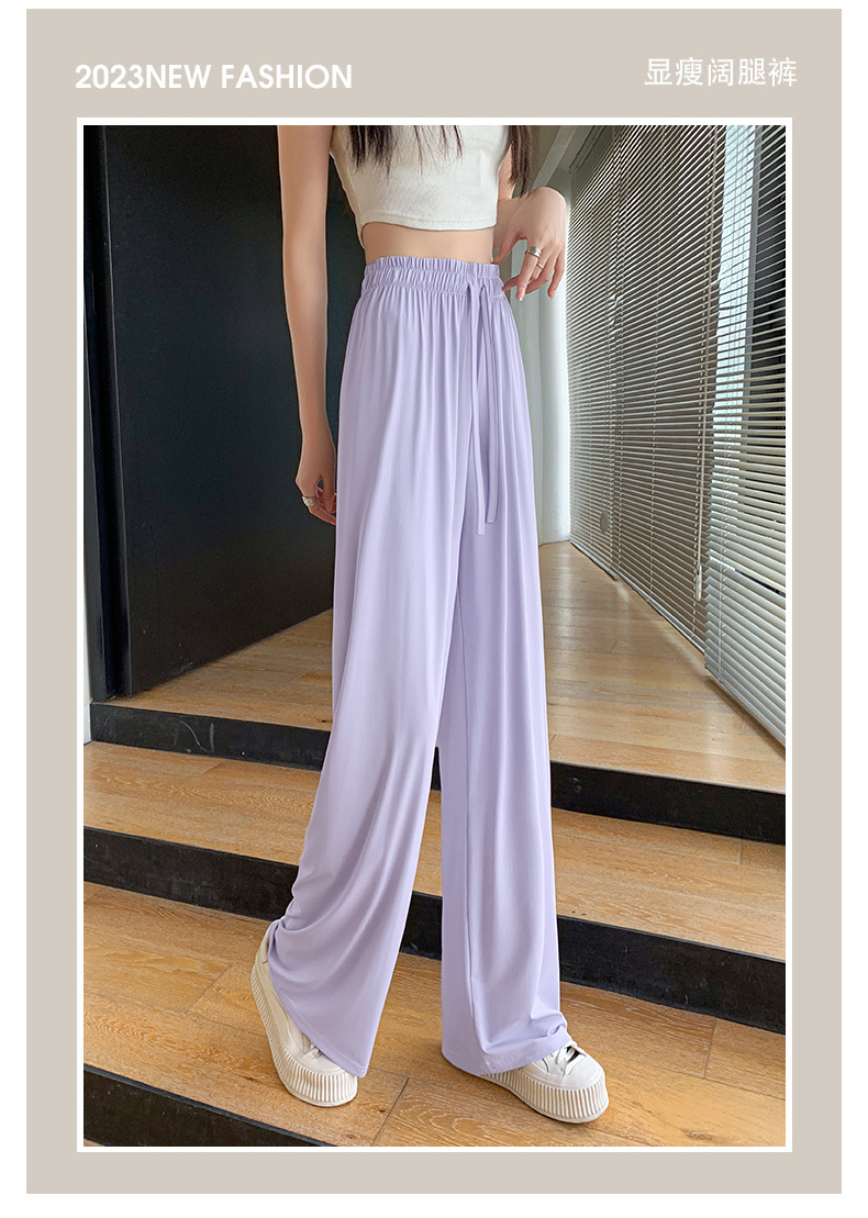 【丝滑垂顺 !高腰显瘦!可盐可甜 】冰丝防晒裤女夏季薄款高腰垂坠感宽松直筒凉凉裤灰色休闲阔腿裤子