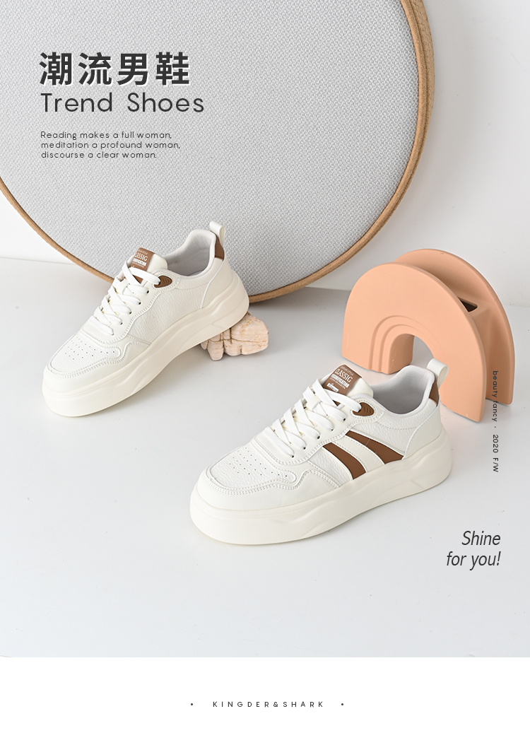 经典鲨2025年春季新品男士韩版时尚拼色平底系带小白鞋休闲鞋KF11-513011