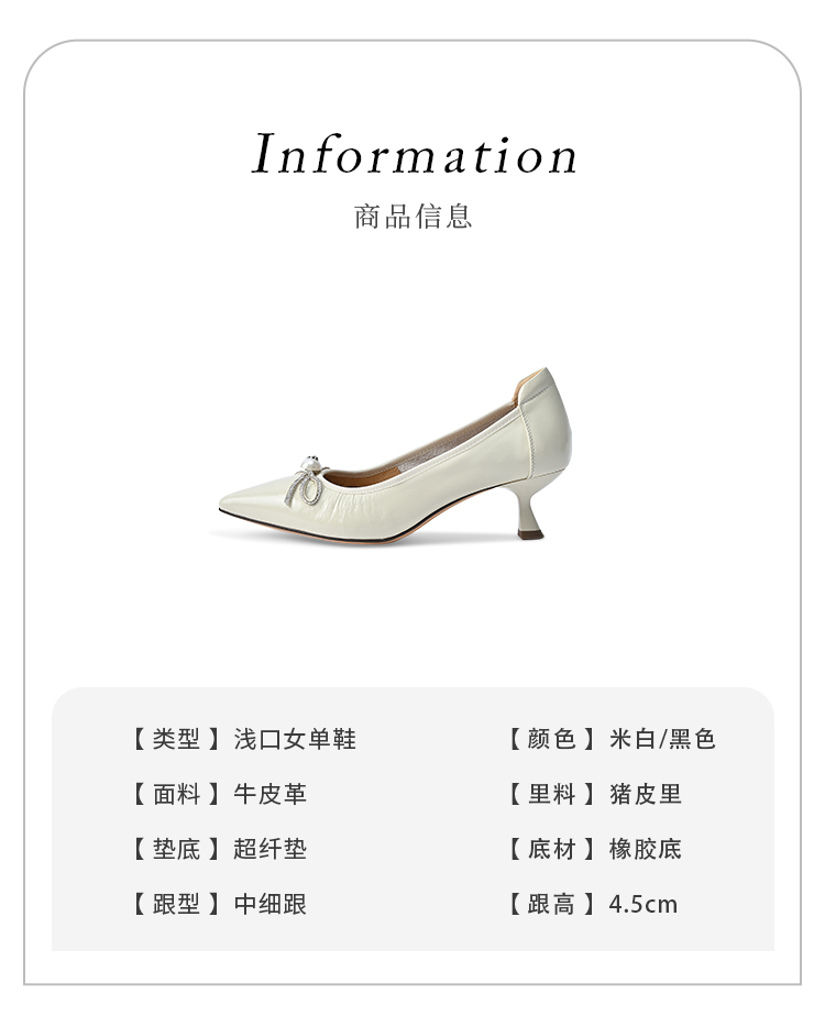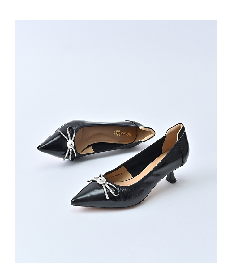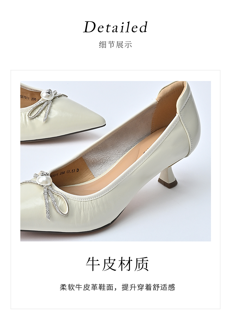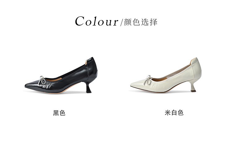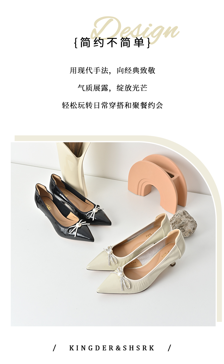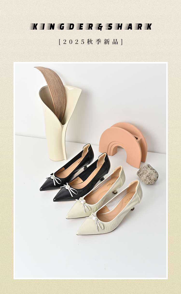 经典鲨2025秋专柜新品牛皮革优雅尖头甜美蝴蝶结高跟鞋单鞋女KC00-537011
