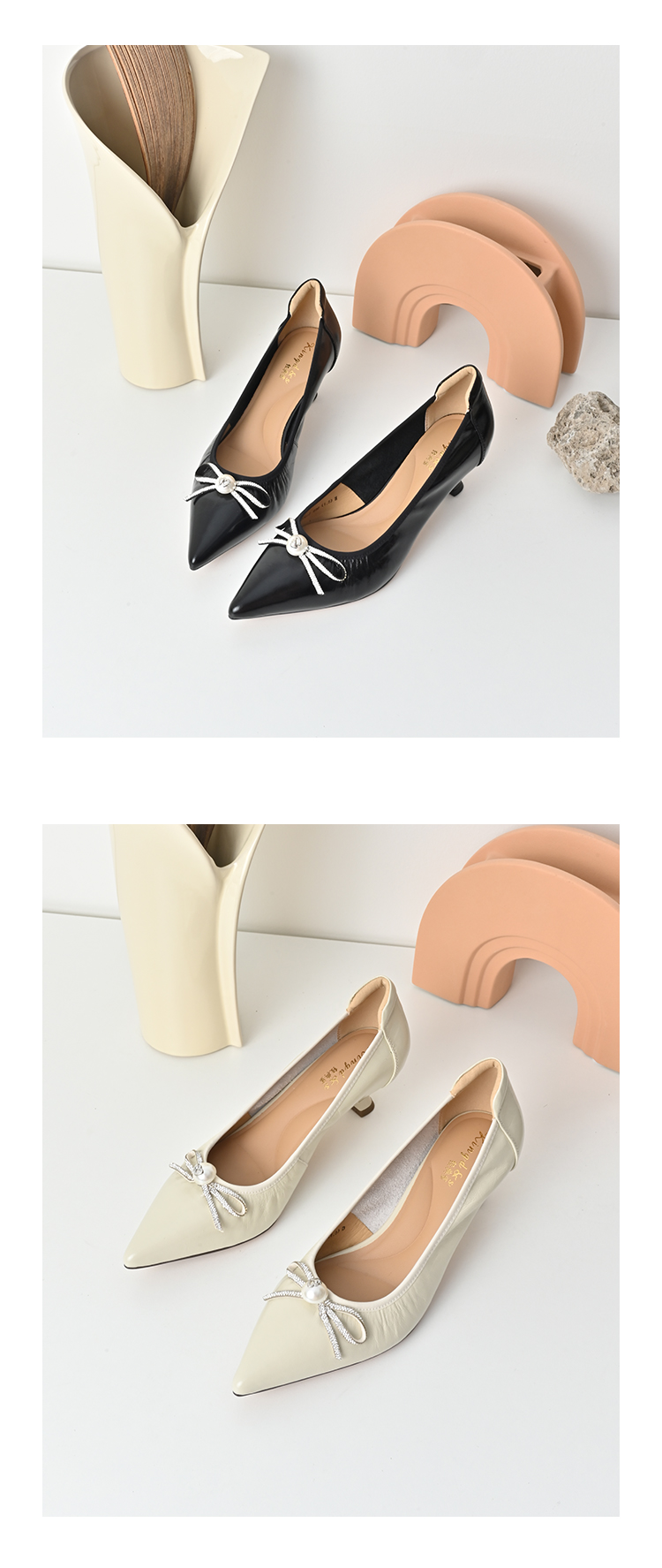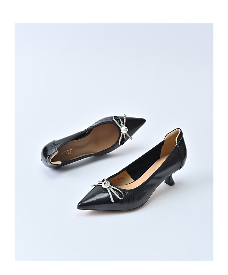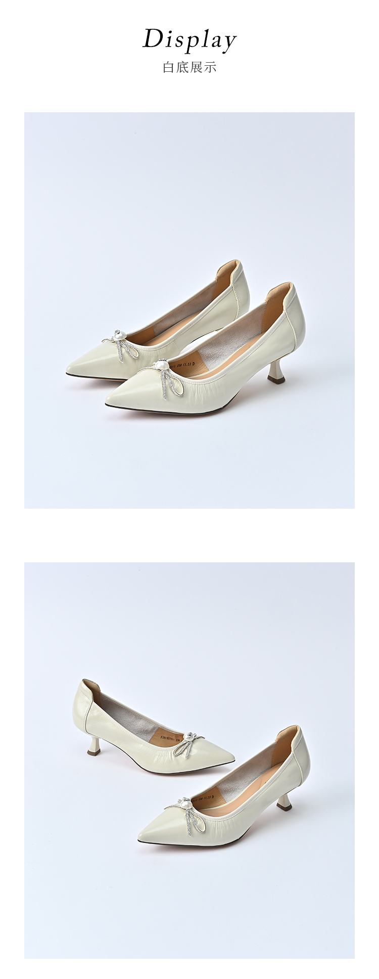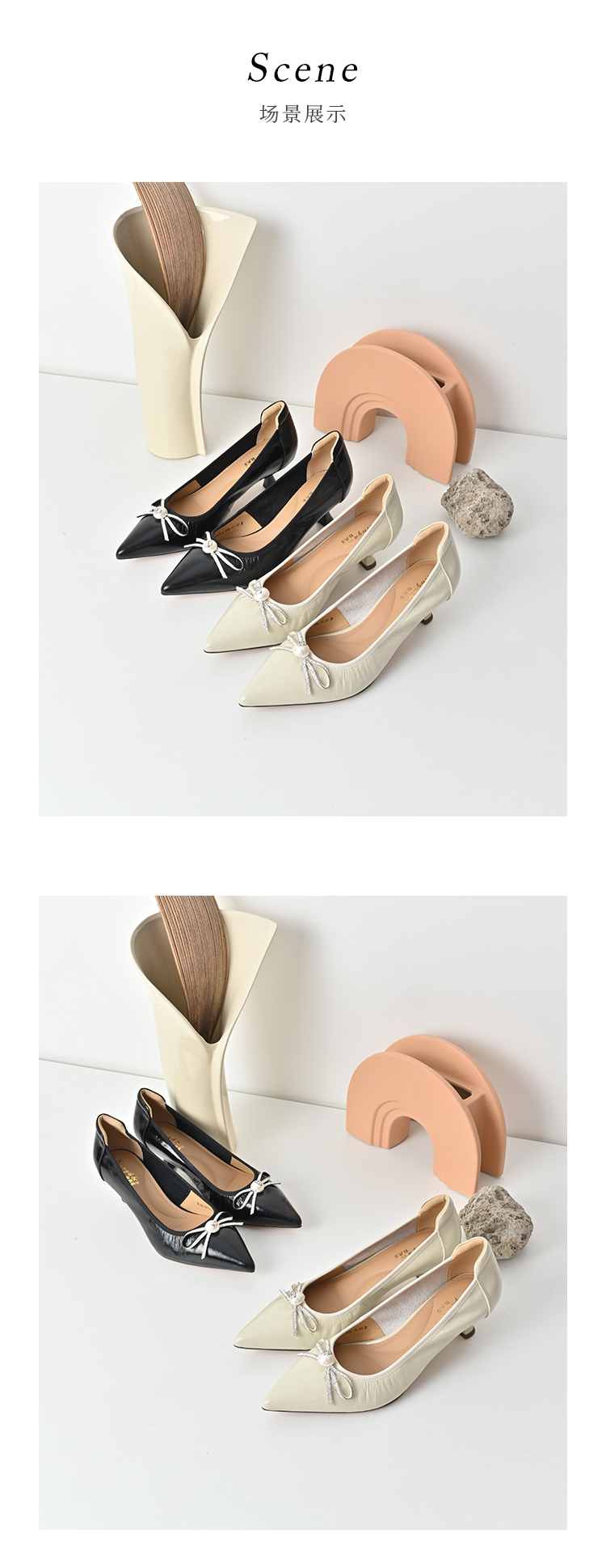 经典鲨2025秋专柜新品牛皮革优雅尖头甜美蝴蝶结高跟鞋单鞋女KC00-537011