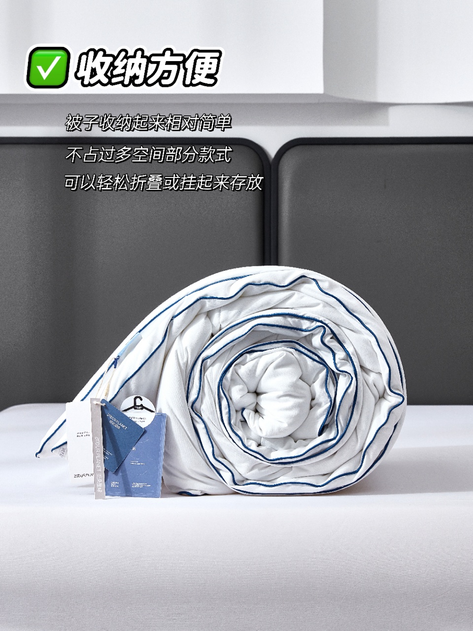 收纳方便:被子收纳起来相对简单,不占过多空间,部分款式可以轻松折叠或挂起来存放。