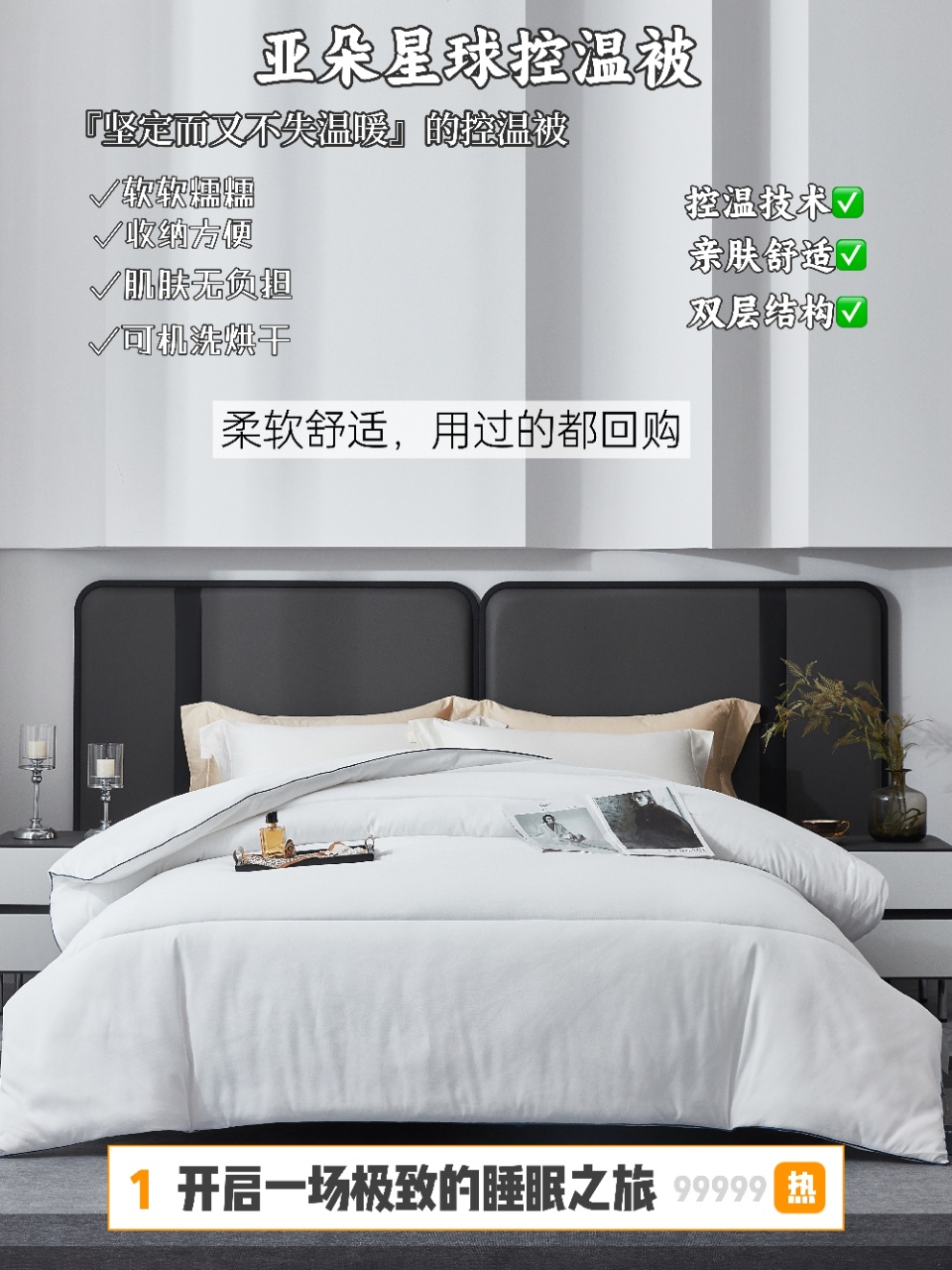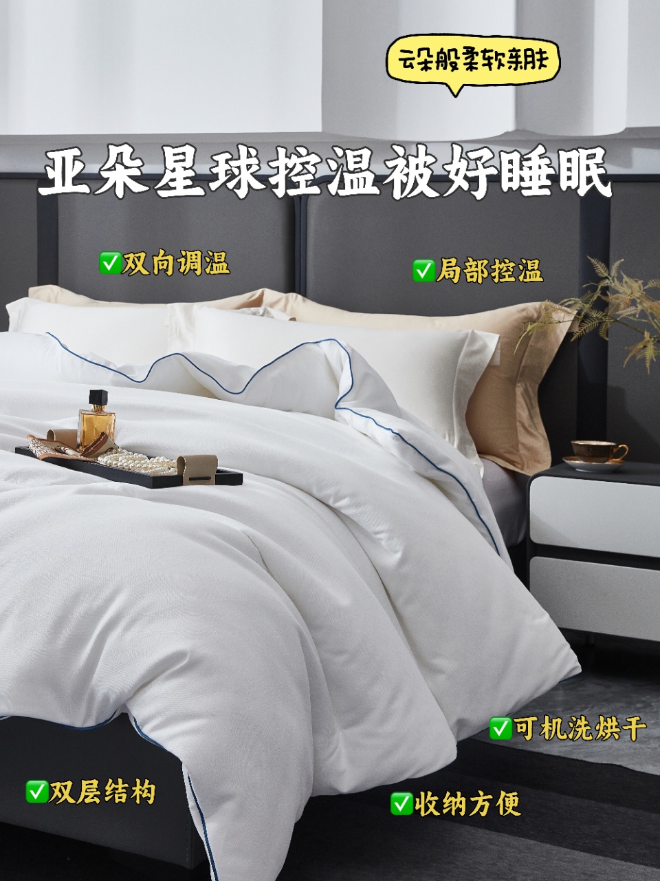 亚朵星球控温被是亚朵生活旗下的一款具有控温功能的被子产品,亲肤面料自然贴合身体曲线高品质标准带来安全睡眠保障可机洗烘干的被子更省心省力