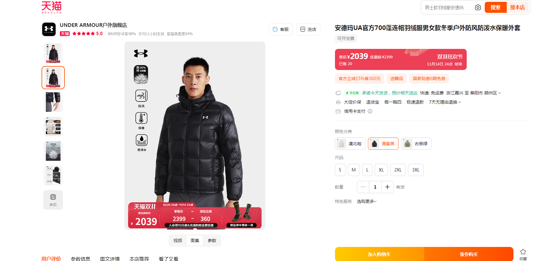 蓬松度700+,含绒量90%。压胶户外滑雪登山鹅绒连帽羽绒服C111260