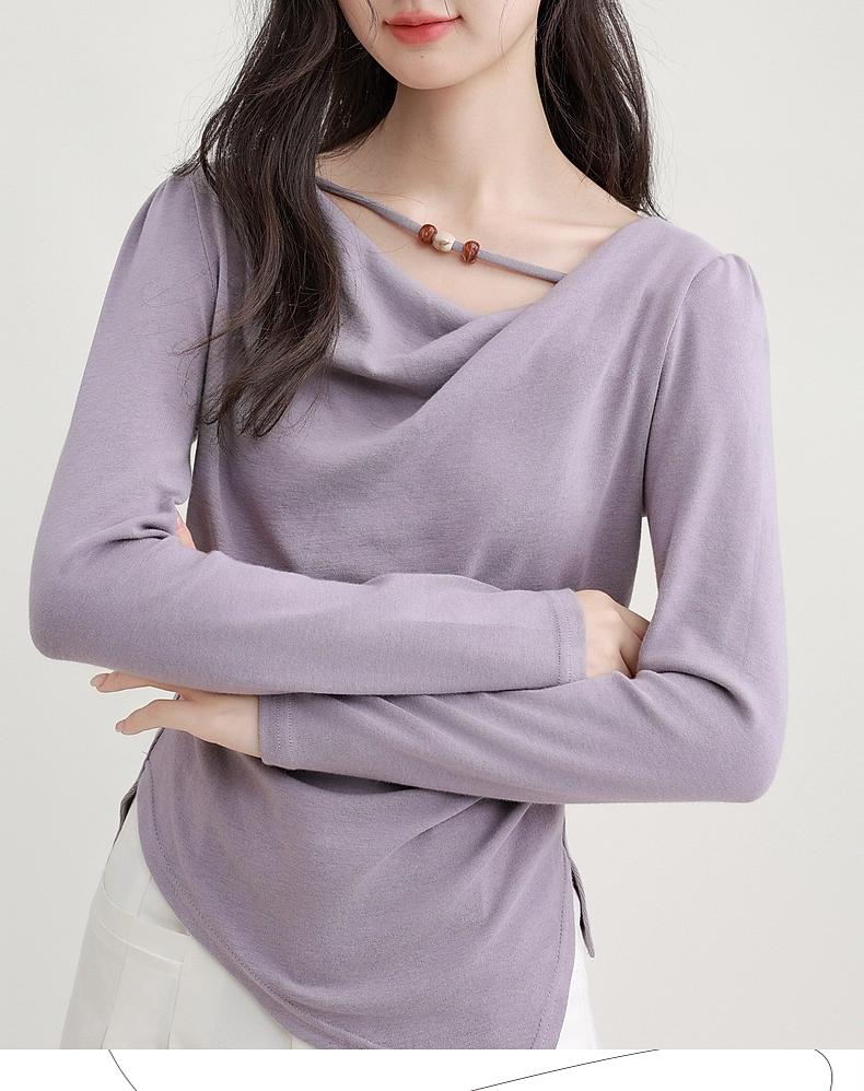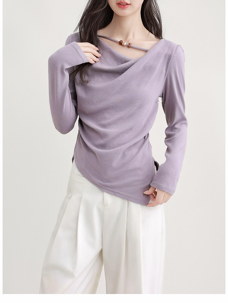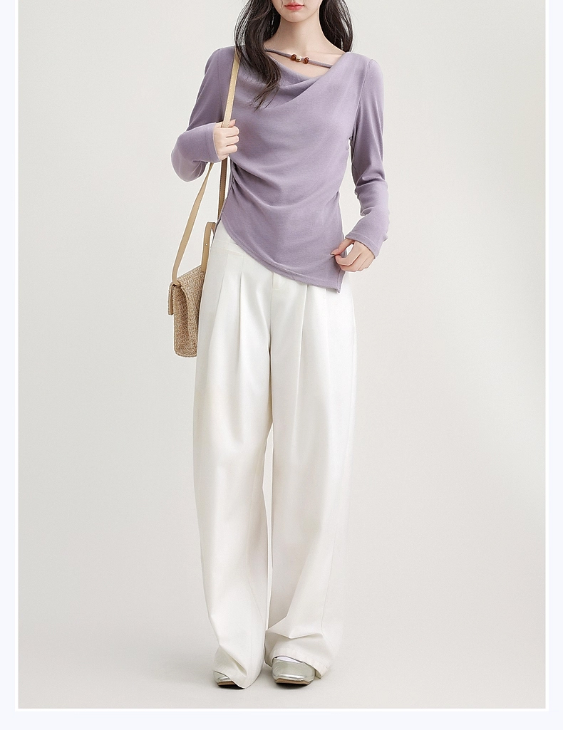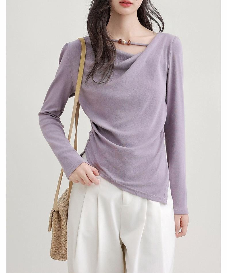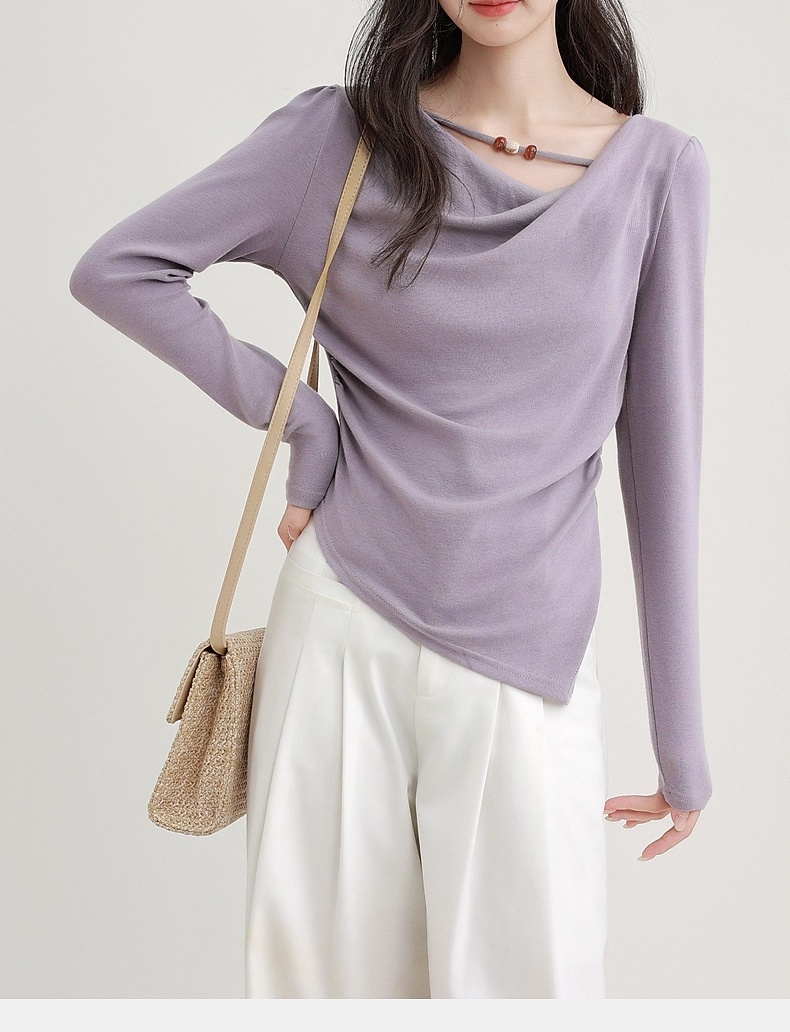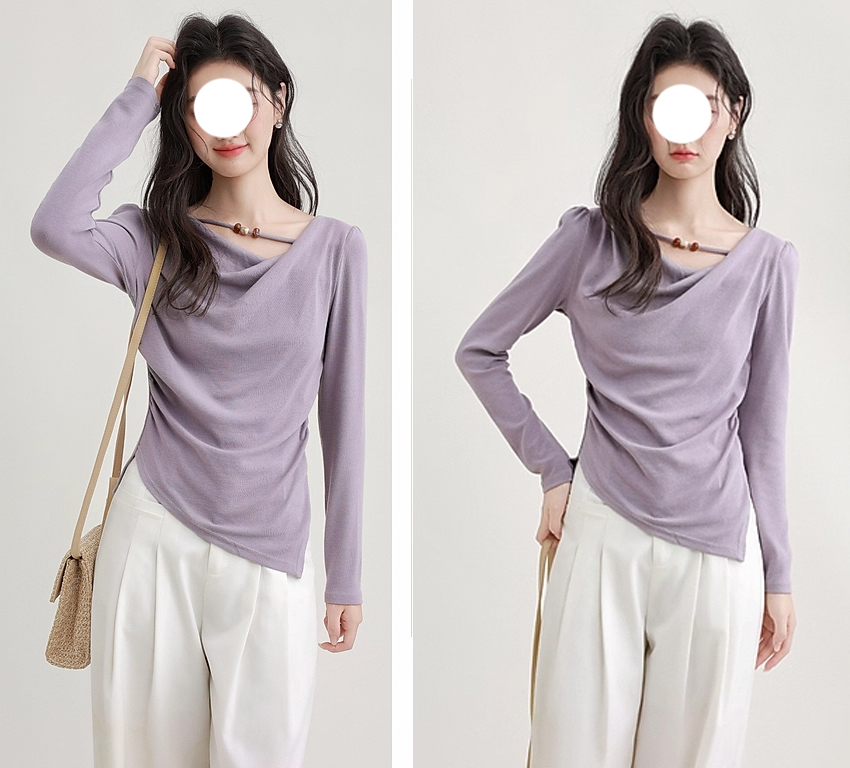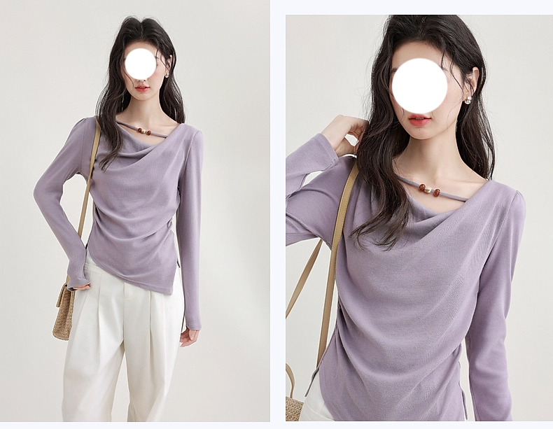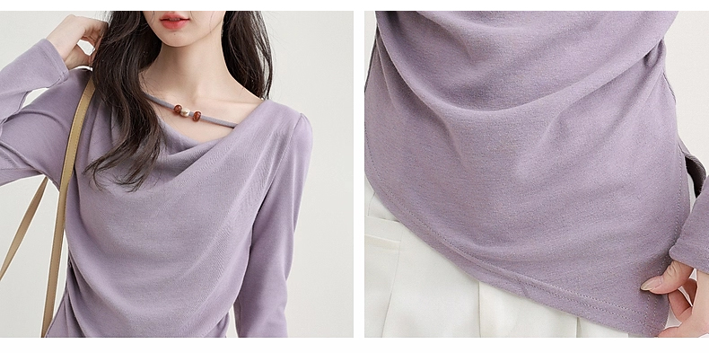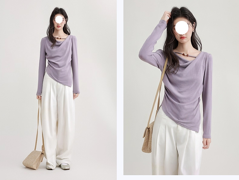 裁缝学苑AH73新款荡领褶皱长袖T恤纸样女装不规则打底衫短款上衣样板