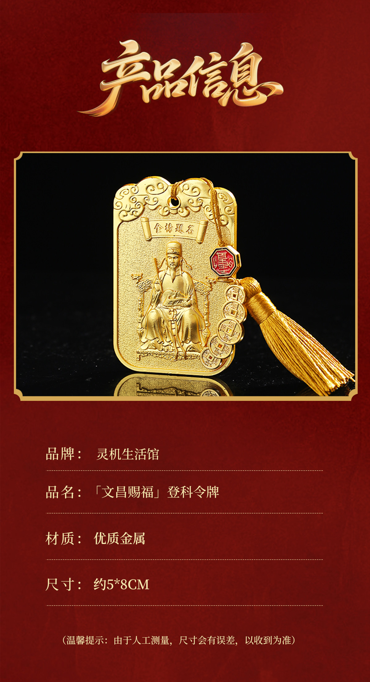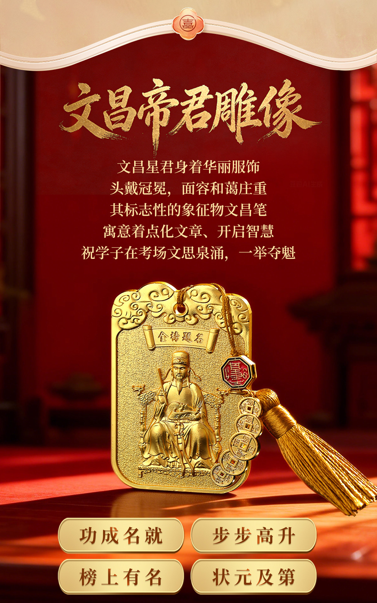 【祈愿吉品】「文昌赐福」令牌挂饰挂件中考高考金榜题名礼物