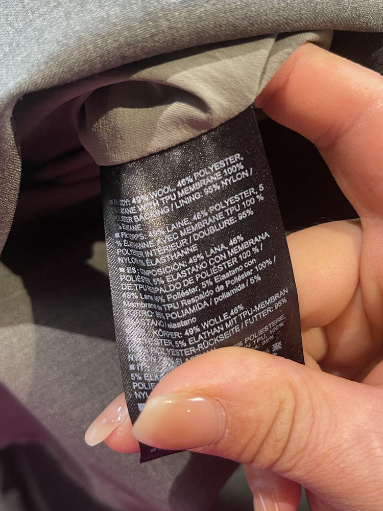 3L Tech Wool 软壳面料由非割尾羊毛和涤纶混纺而成