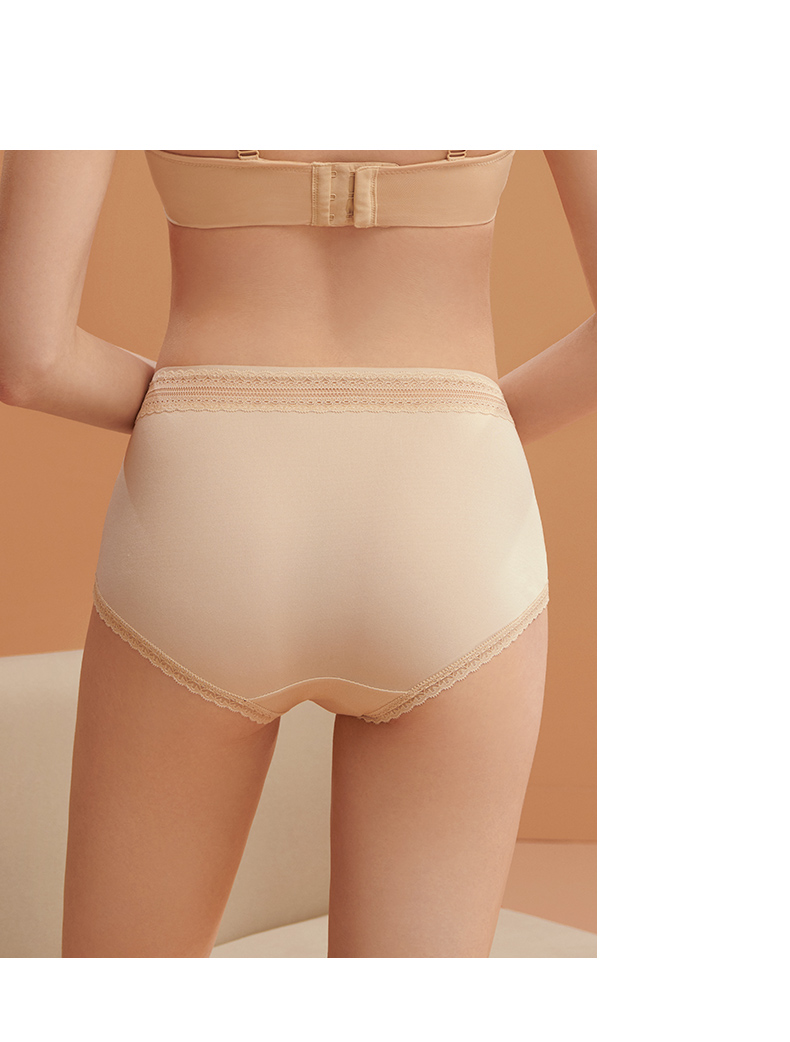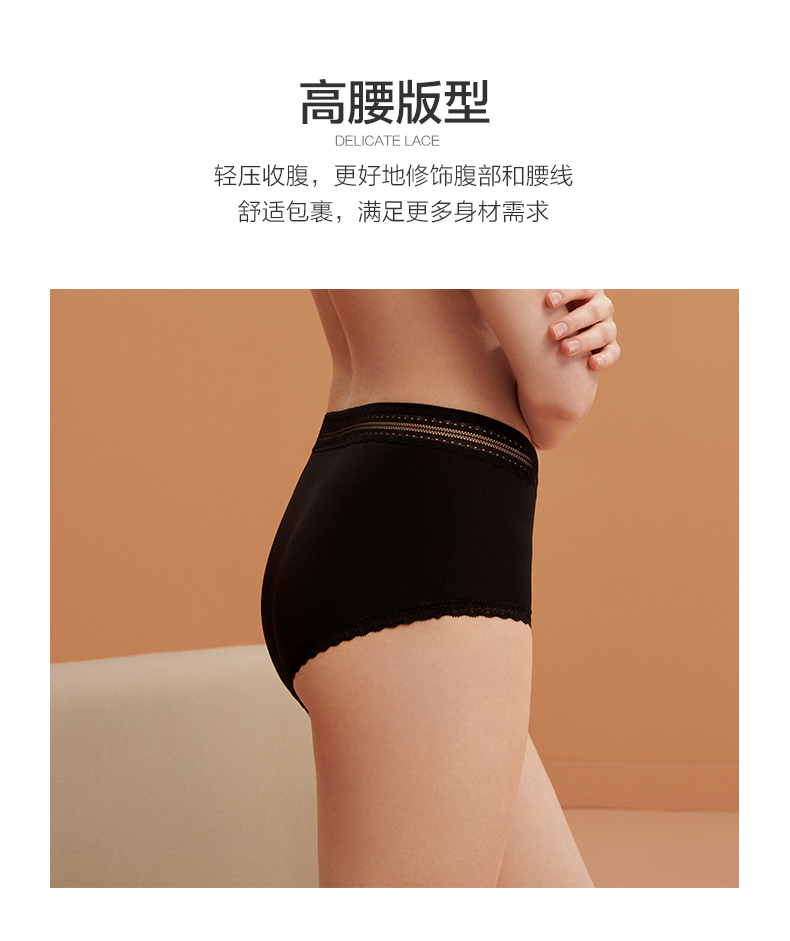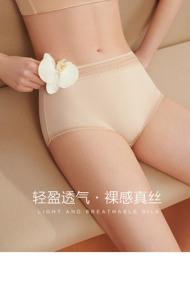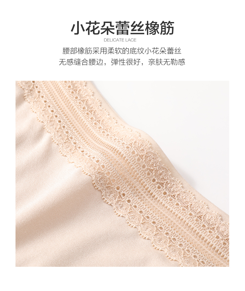 金三塔弹力桑蚕丝舒适包臀收腹高腰花边舒适透气纯色小平角裤(私密物品不支持退换) NZFBC206