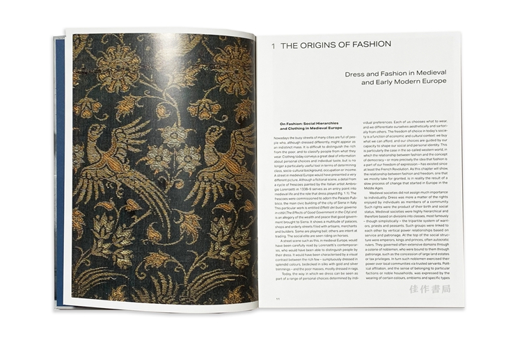 本讲述了中世纪以来西方时尚的历史,时尚如何一步步影响我们的态度,行为和信仰?本书筛选不同时代的时尚关键词,例如中世纪颁布的《禁奢令》(sumptuary laws)对限制服装支出的意义;早期现代欧洲服饰中黑色的使用;体育在今天的时尚设计中产生的深远影响;以及新世纪奢侈品行业的异军突起。