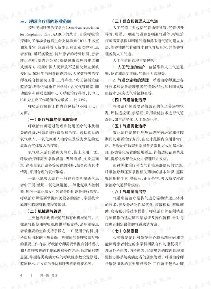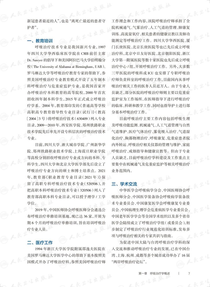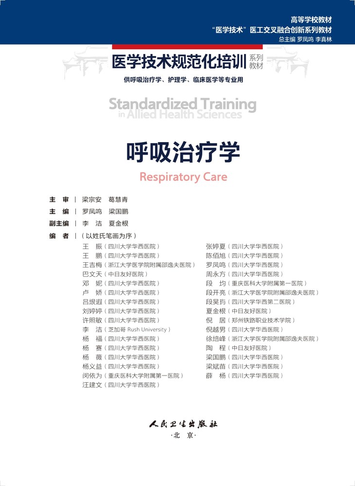 呼吸治疗学在应对心肺功能不全和异常方面发挥着重要作用,其核心目标是最大程度地提高患者的呼吸功能和整体健康状态。呼吸治疗师主要在大型医院的重症监护病房、呼吸科病房、急诊科等关键科室工作,负责呼吸支持、气道管理、心肺康复等重要任务。临床操作的规范化、系统化对于呼吸治疗学人才培养至关重要,本书编写过程中严格把控内容质量,力求客观规范;旨在为呼吸治疗学相关的医学院校师生、从业人员提供一个系统且实用的学习资料。