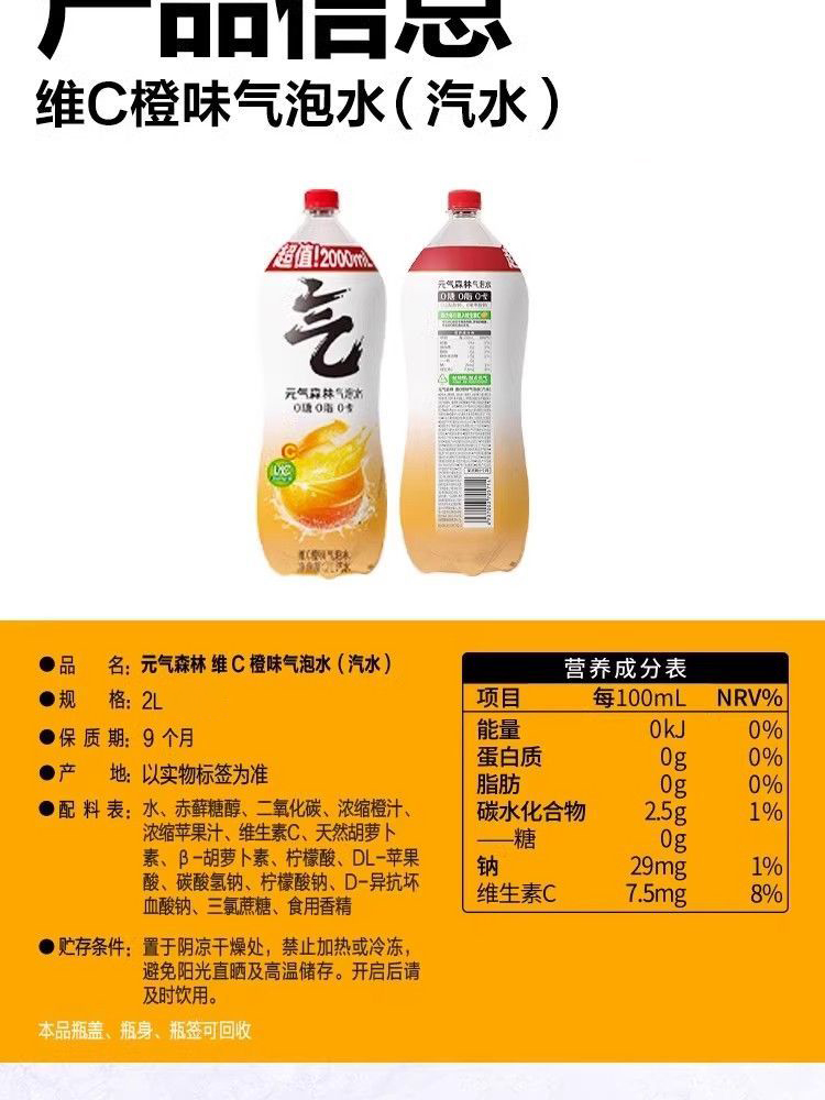 元气森林维C橙味汽水2L