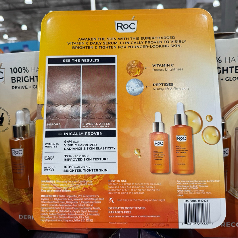 美白祛斑必备,打折📣美国直邮✈️特价350元/2瓶装🉐包税包邮到手了🔥Roc焕活亮彩精华50ml🔥高浓抗氧化VC精华耀白小橙瓶面部美白淡斑精华液