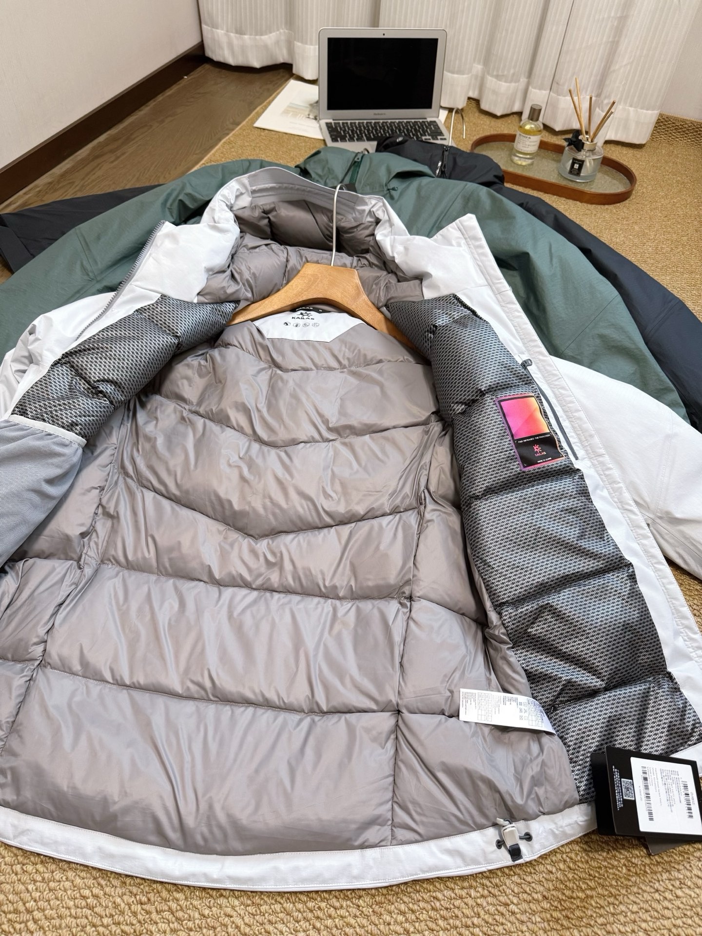 需要高端羽绒服的男士不要错过了绝对有逼格有质感!盲拍不踩坑的今天价格好到爆炸代工单哈!原订单有剩余的面料跟下来的不然这个价格想都不要想 重工羽绒服科技防雨防风专业防寒!采用先进的防风防泼面料,FILTER-TEC科技面料,具备DWR防水面料技术,能有效抵御雨水和大风,同时保持透气性,严防雨雪入侵的同时兼具透湿性,确保户外运动时的舒适体验 。内里石墨烯热反射科技CoreHeat人体核心锁温系统 为心脏区域提供保暖防护