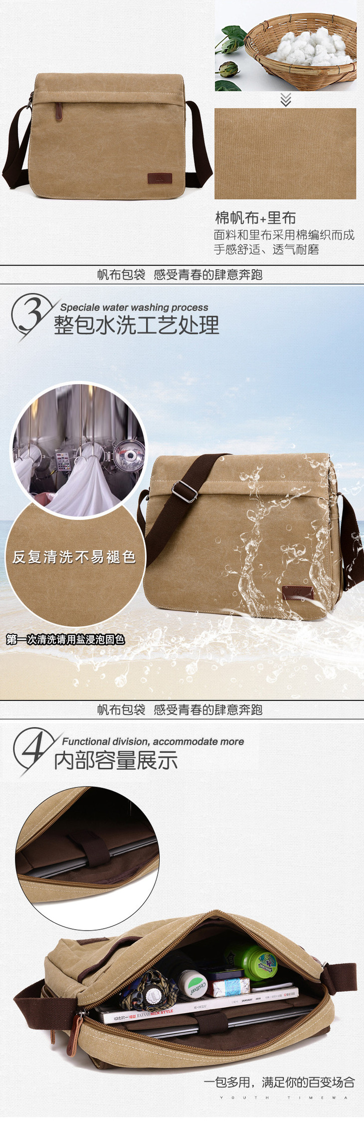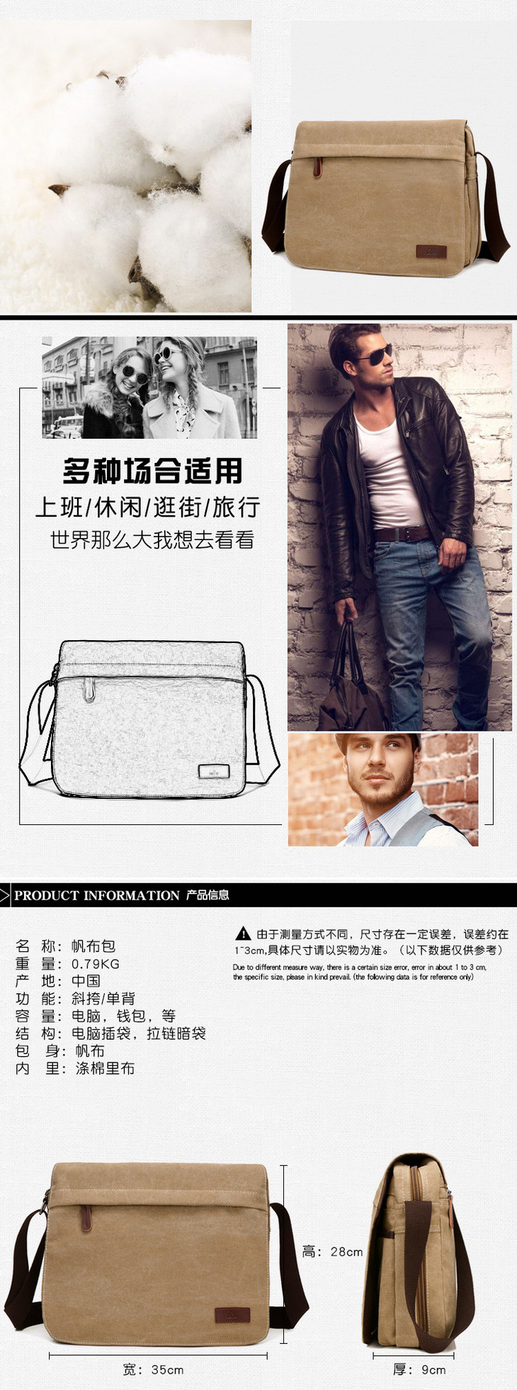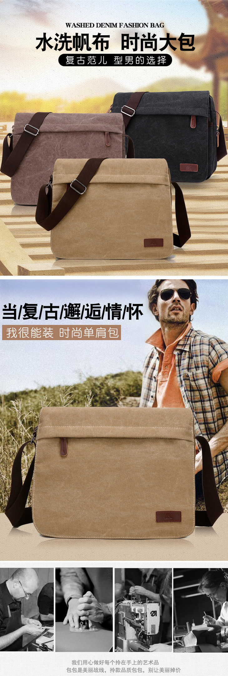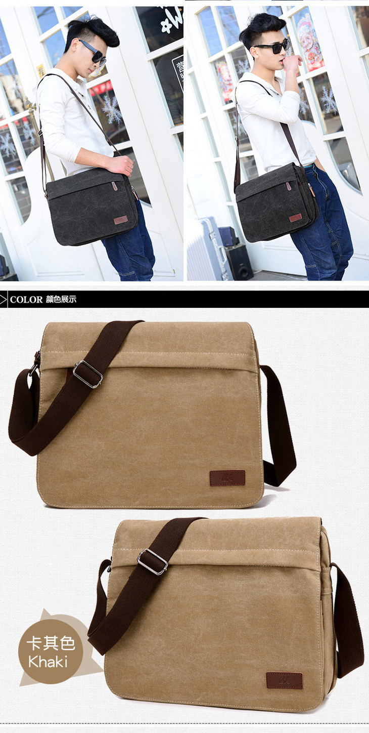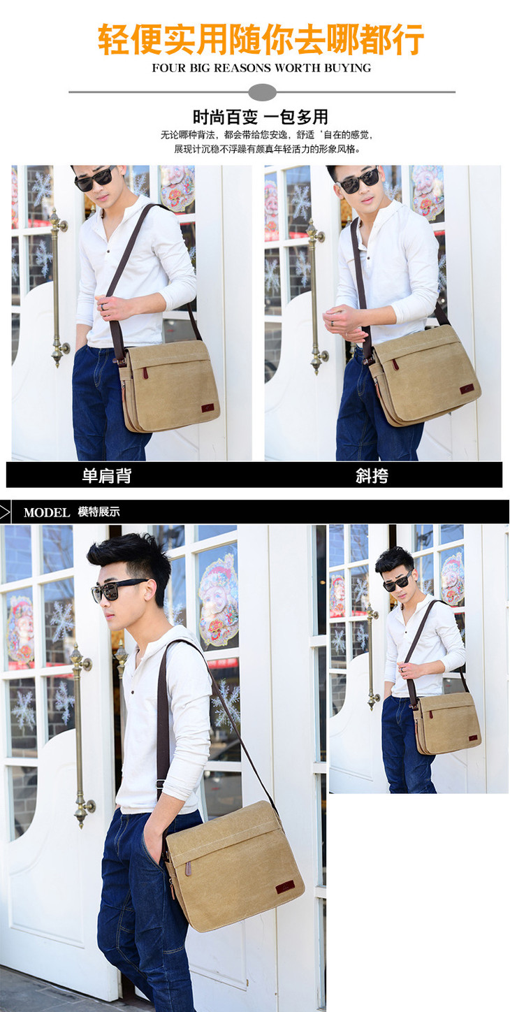 。【服饰鞋包】男包单肩男士商务休闲帆布包韩版户外运动小背包斜挎包包潮