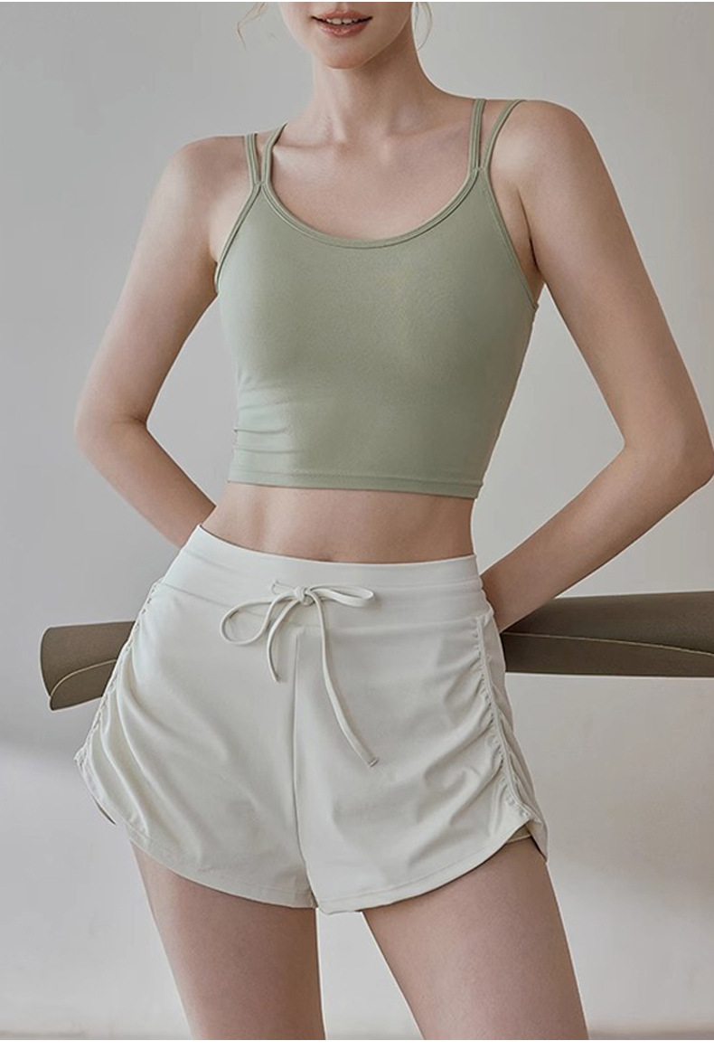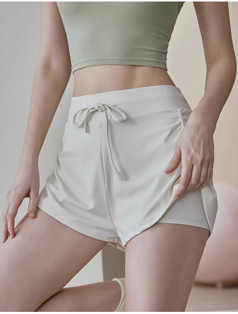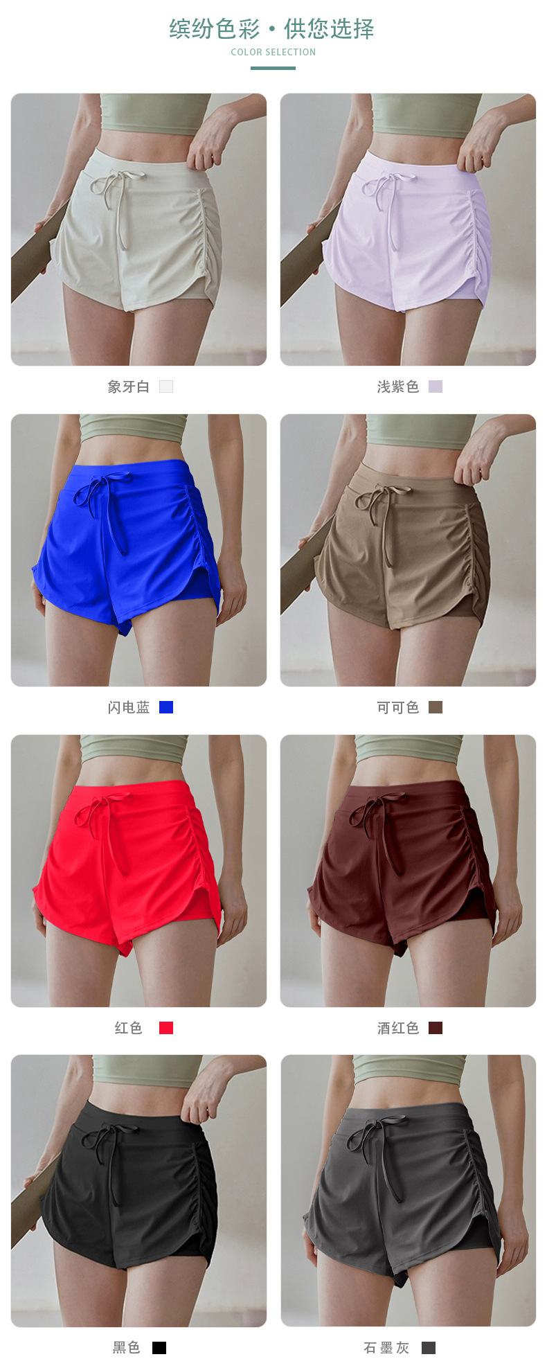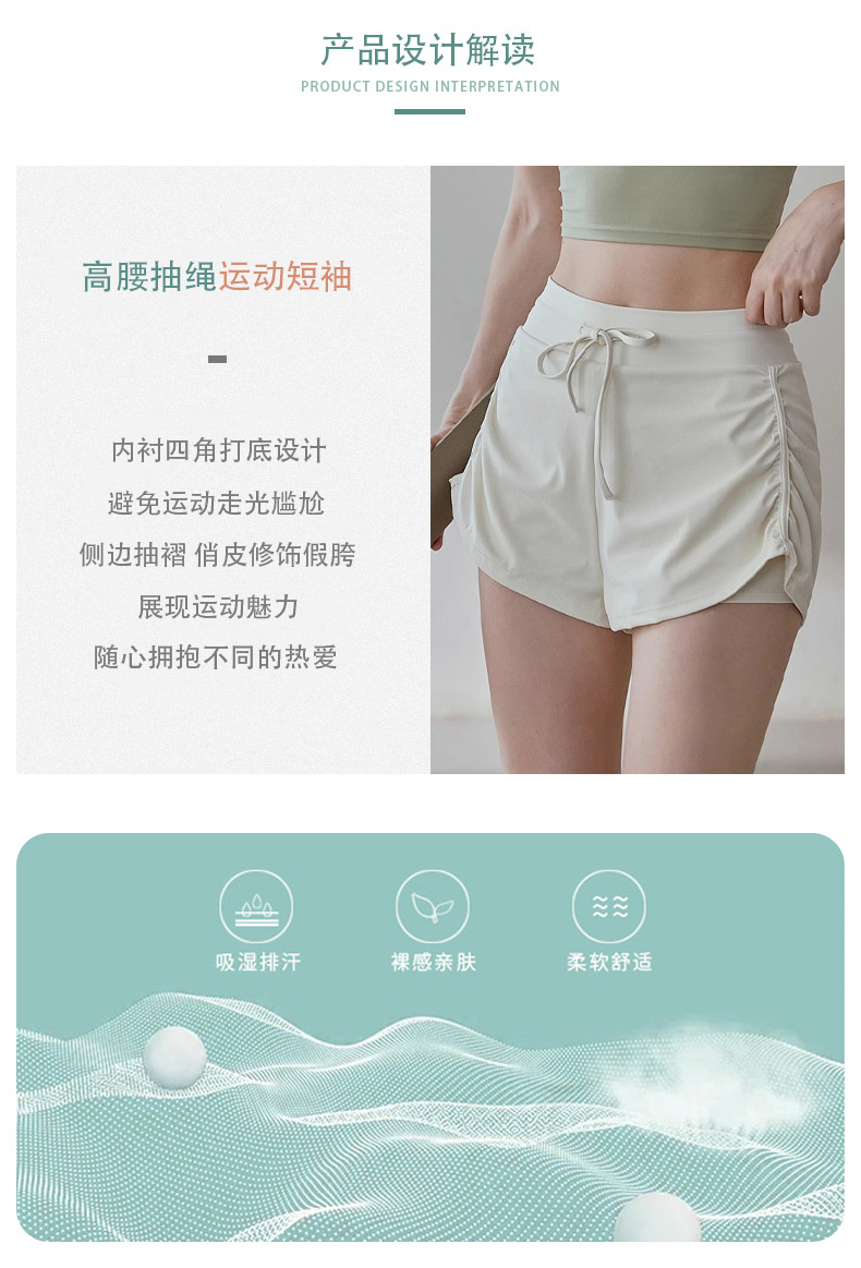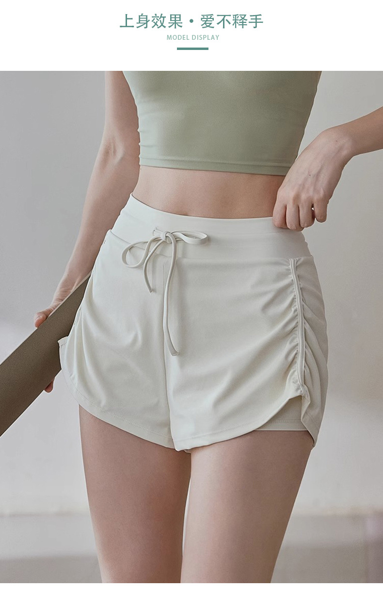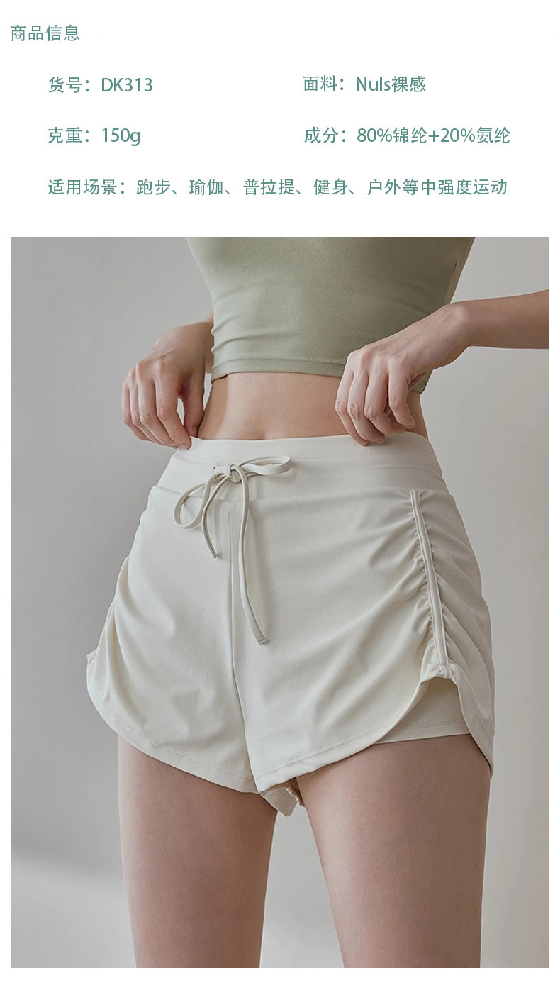 新款女抽绳收褶假两件百搭瑜伽短裤 JM 000 DK313