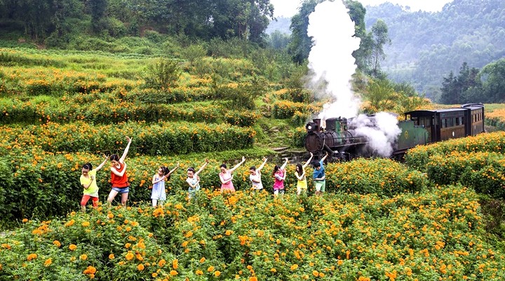 11点左右到达,下车先来一个大合影集体照,之后在领队的带领下整装出发,沿途欣赏油菜花,也可乘坐蒸汽小火车观赏,建议只坐1-2站。