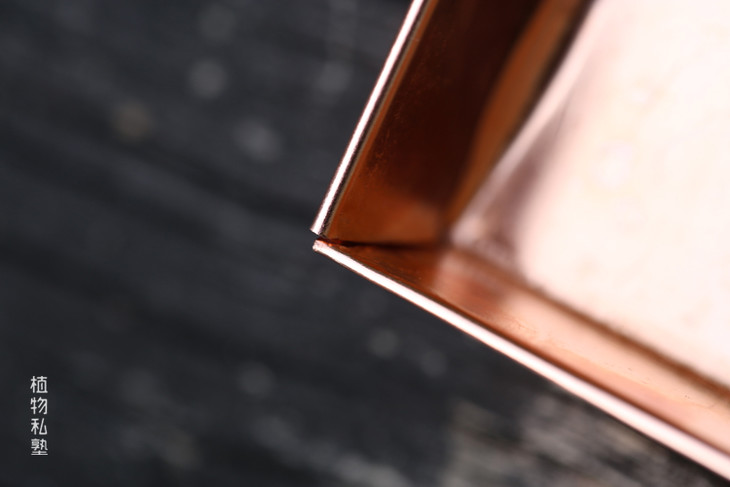 一张铜皮经过裁剪折叠勾缝捶打而成
