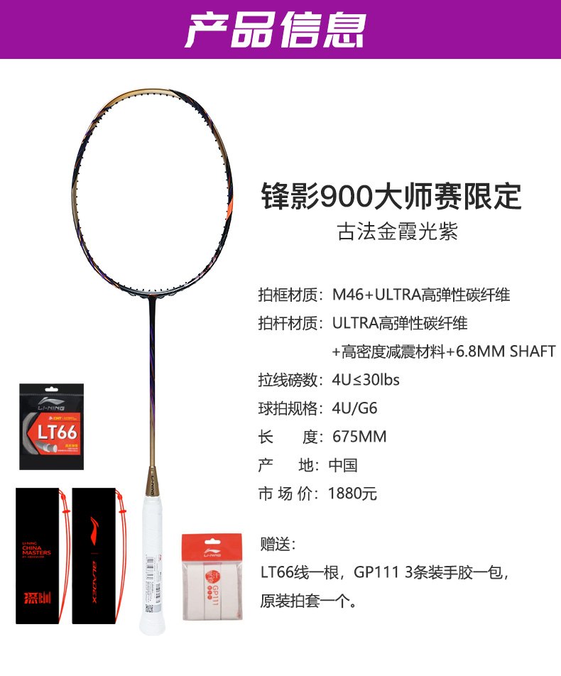 [空拍不穿线]李宁锋影900大师赛限定款AYPV085 全碳素羽毛球拍限量版
