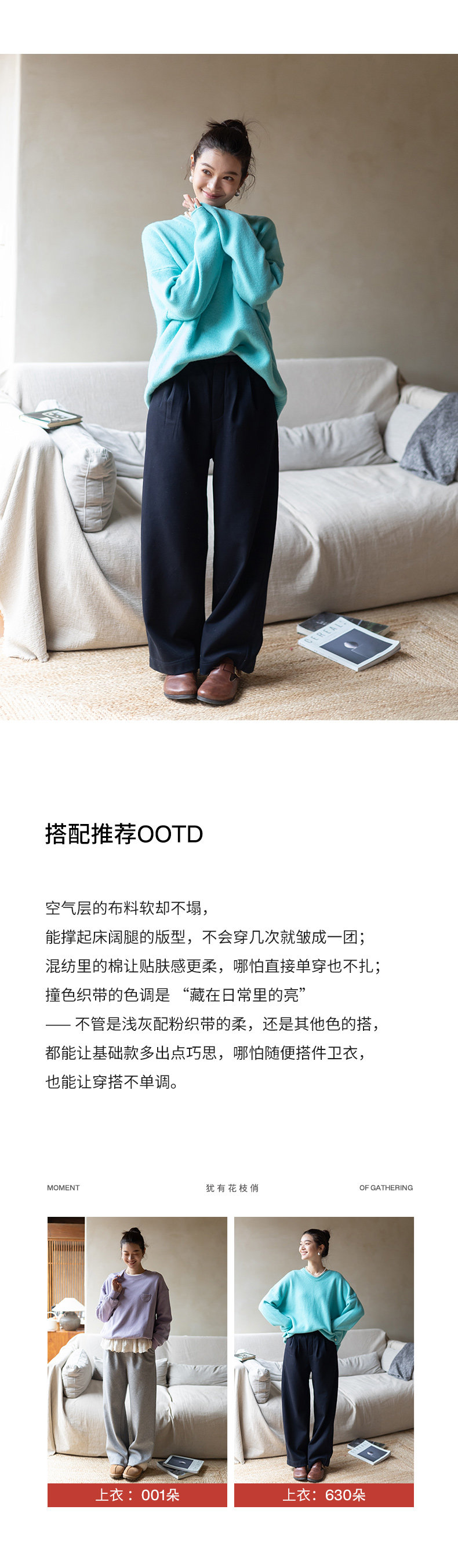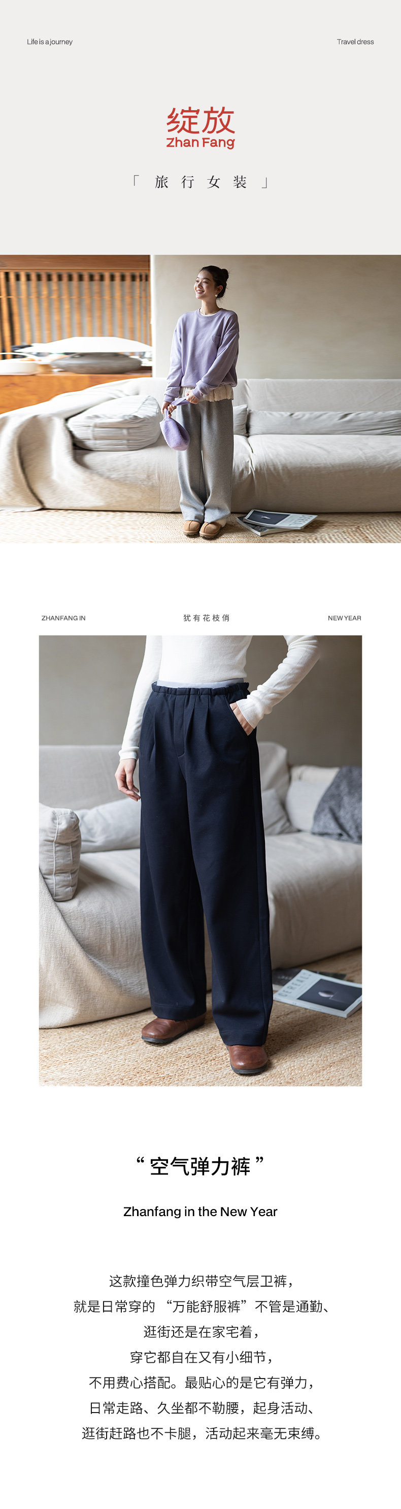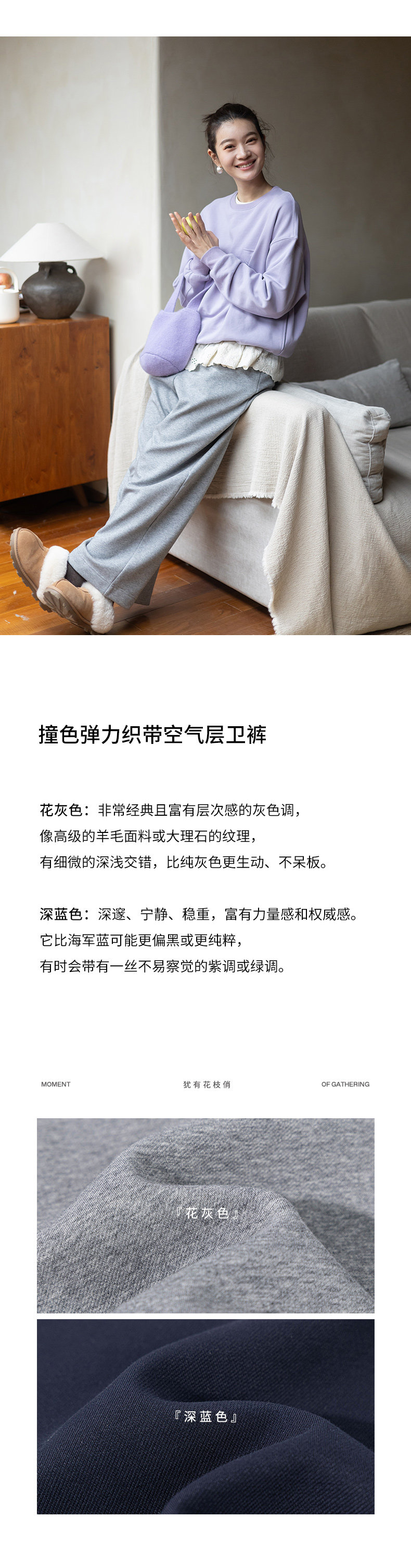 特绽放058朵/空气弹力裤·高腰撞色弹力织带空气层卫裤新款直筒裤