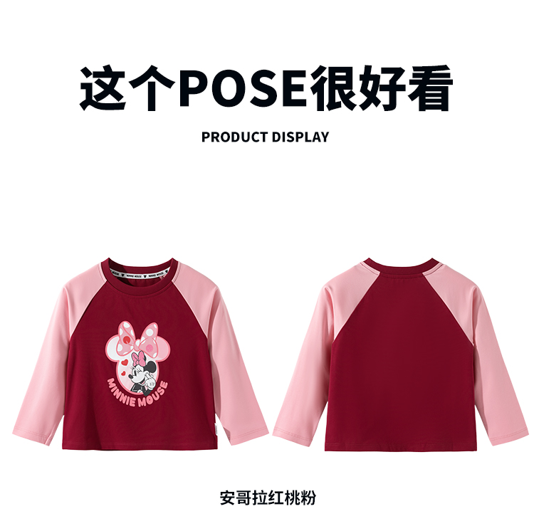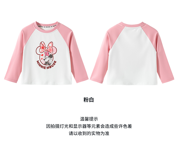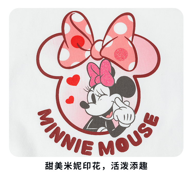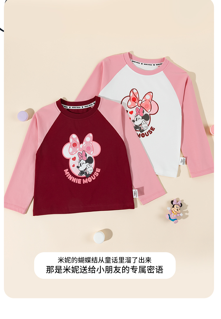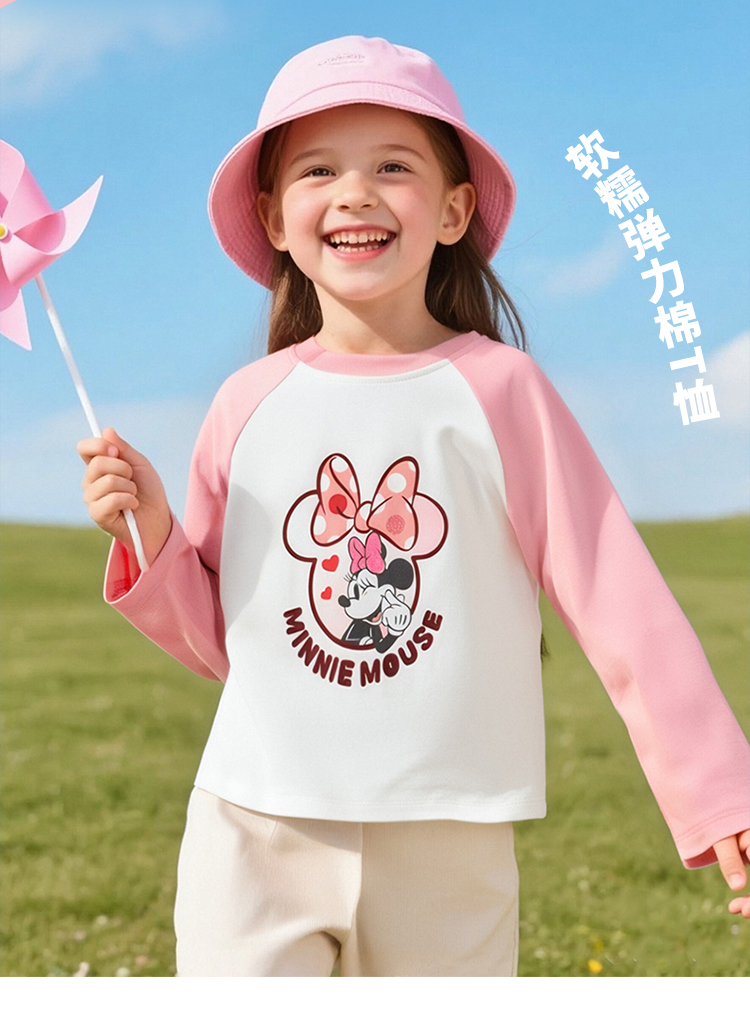 迪士尼童装女孩洋气可爱米妮印花T恤春秋季宝宝百搭休闲长袖上衣ZD3ES002*