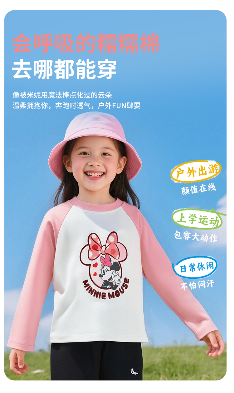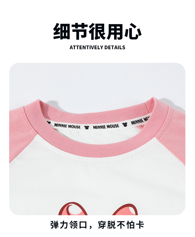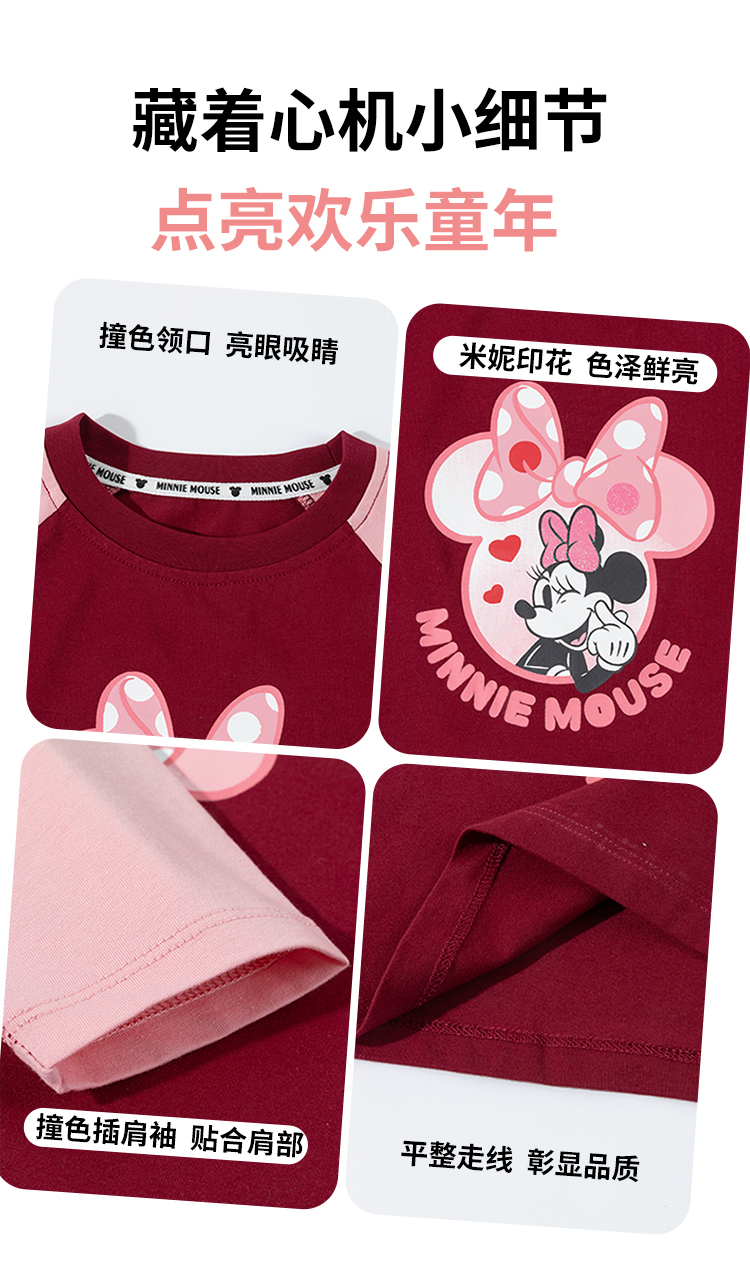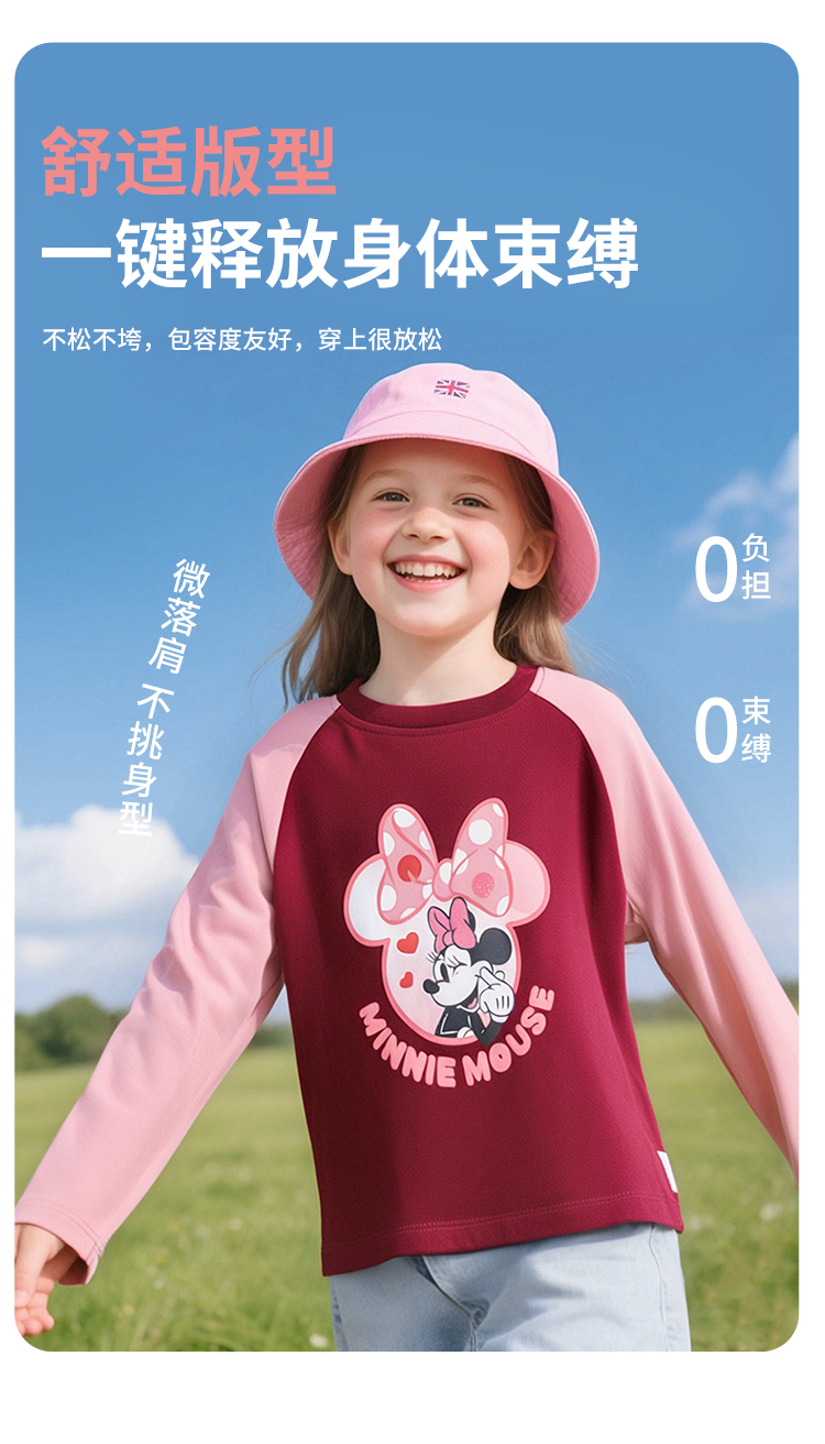 迪士尼童装女孩洋气可爱米妮印花T恤春秋季宝宝百搭休闲长袖上衣ZD3ES002*