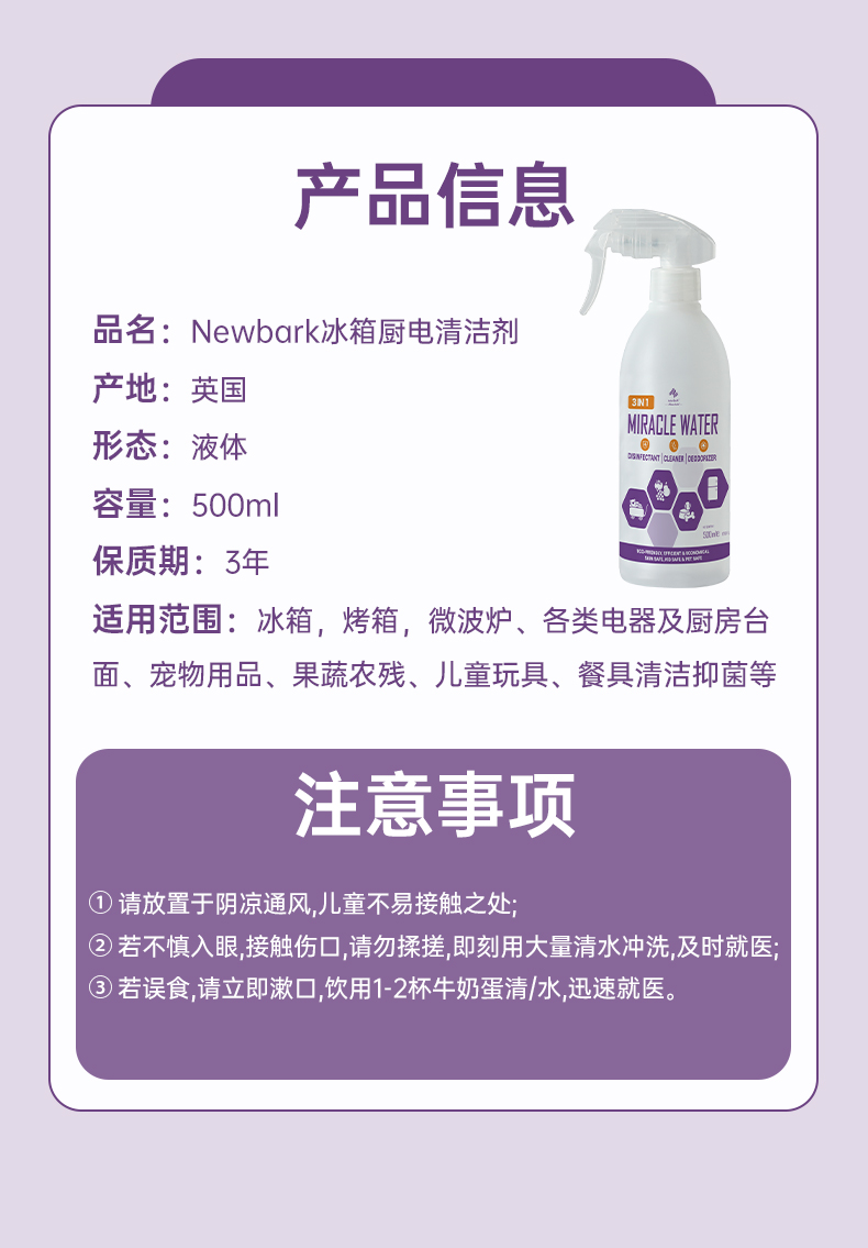 【品名】Newbark冰箱厨电清洁剂 纯水配方 母婴适用 500ml/瓶(Ole超市同款在售) 【规格】500ml/瓶 【产地】英国 【保质期】3年 【发货包装】独立包装 【发货地】广东 【发货快递】圆通、中通随机发 【不发货区域】新疆、西藏、港澳台 【发货时效】48-72小时,周末节假日顺延 |
