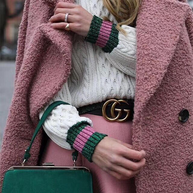 要问明星最爱扎的腰带,当属GUCCI这款双G腰带了 ,简直是无处不在!单凭古驰的双G腰带的街拍图就足够刷屏!