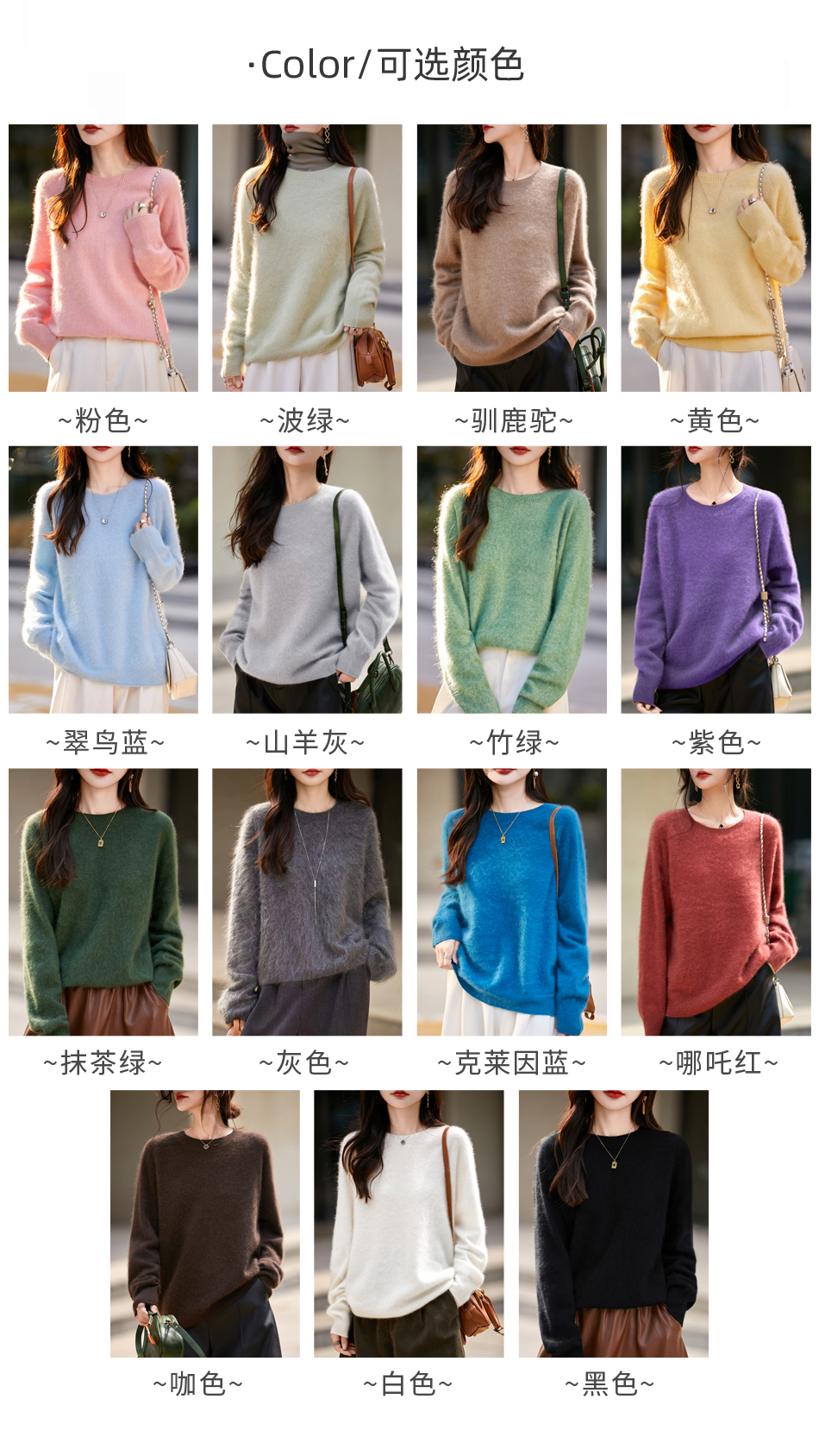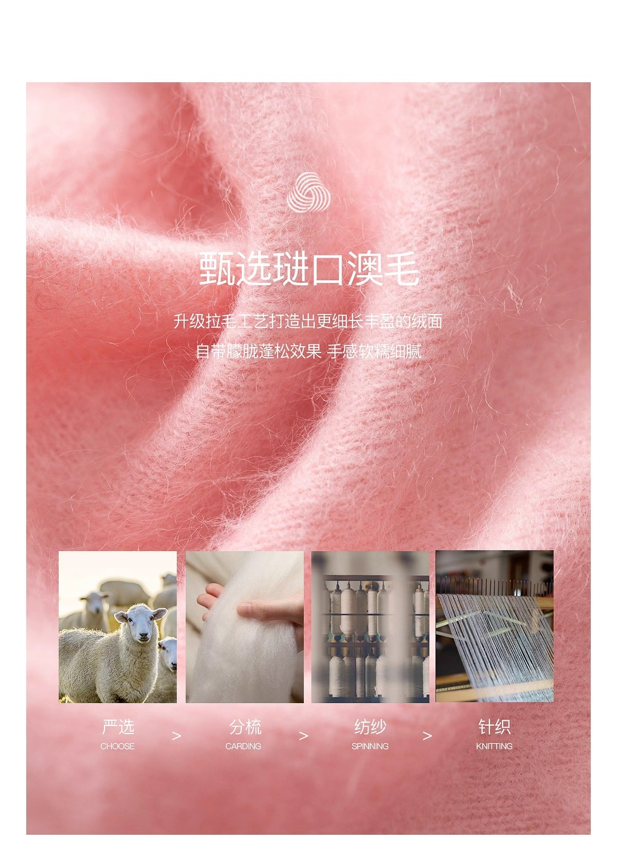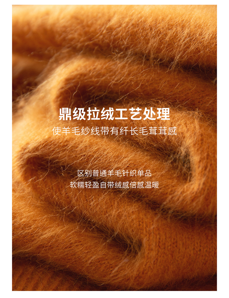 毛茸茸 暖呼呼 95%美丽诺羊毛+5%山羊绒 拉毛羊毛衫 圆领/V领/半高领/高领