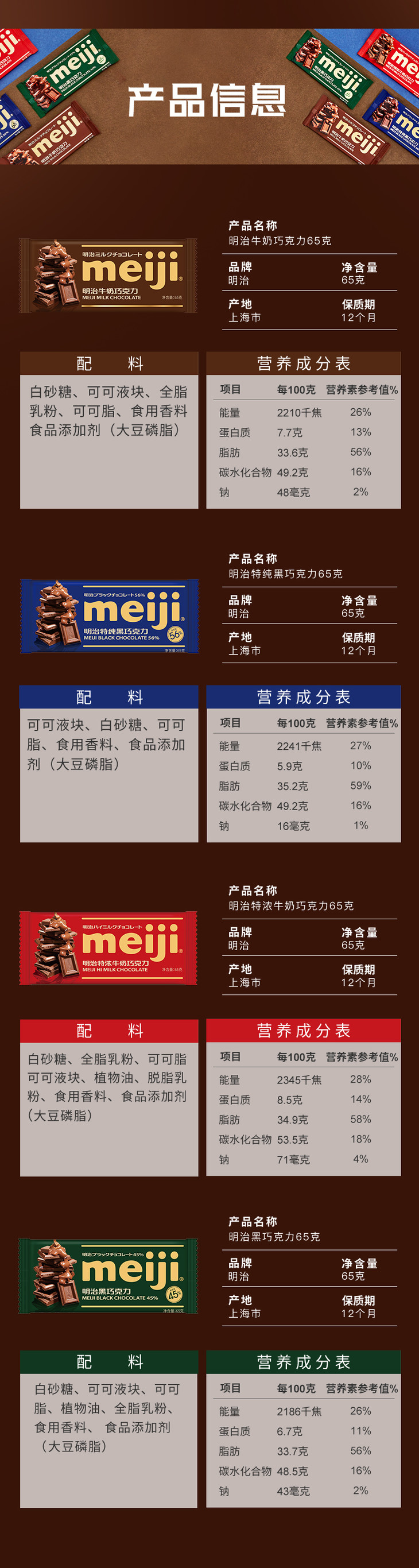 明治排块特浓牛奶巧克力65g