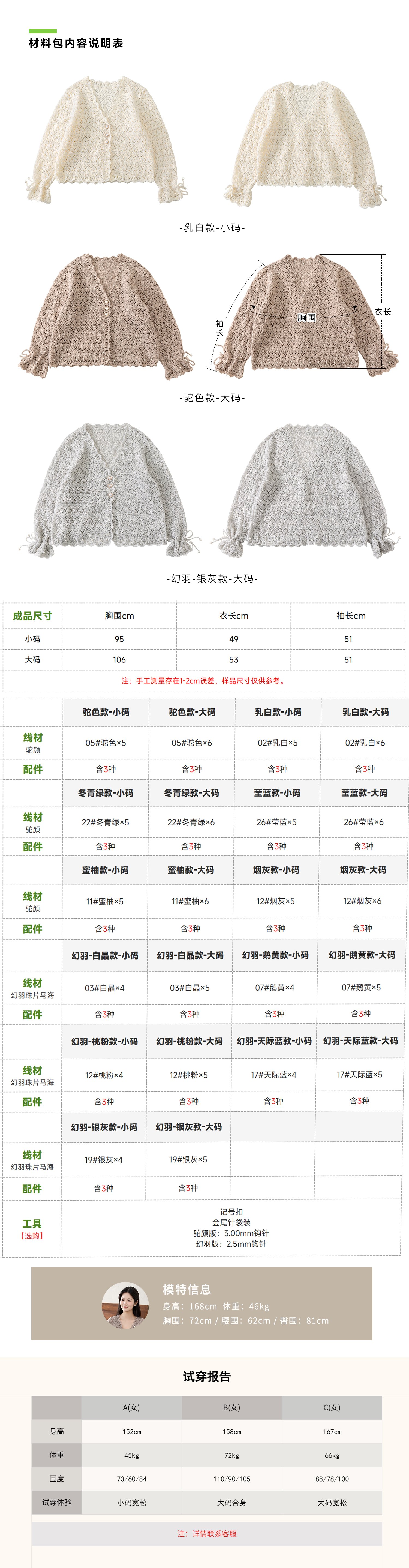 苏苏姐家舒蕾开衫手工diy钩针编织毛线团外套衣服材料包