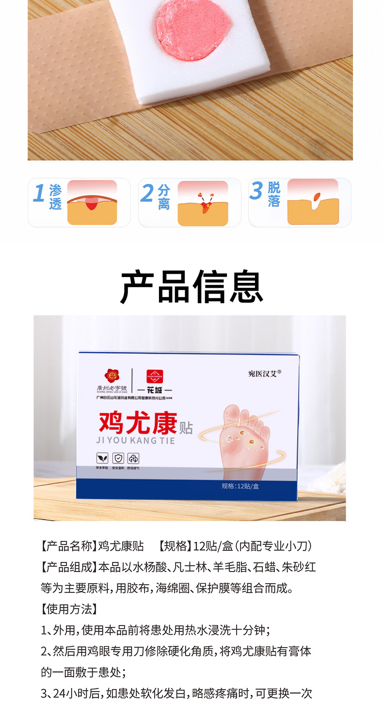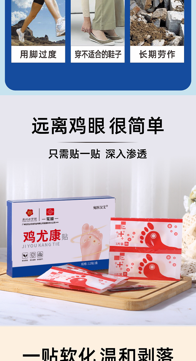 【19.9得12贴❗鸡尤康贴】只需贴一贴深入渗透,软化温和,足部护理去鸡眼膏老茧死皮肉刺草本鸡眼贴QQ