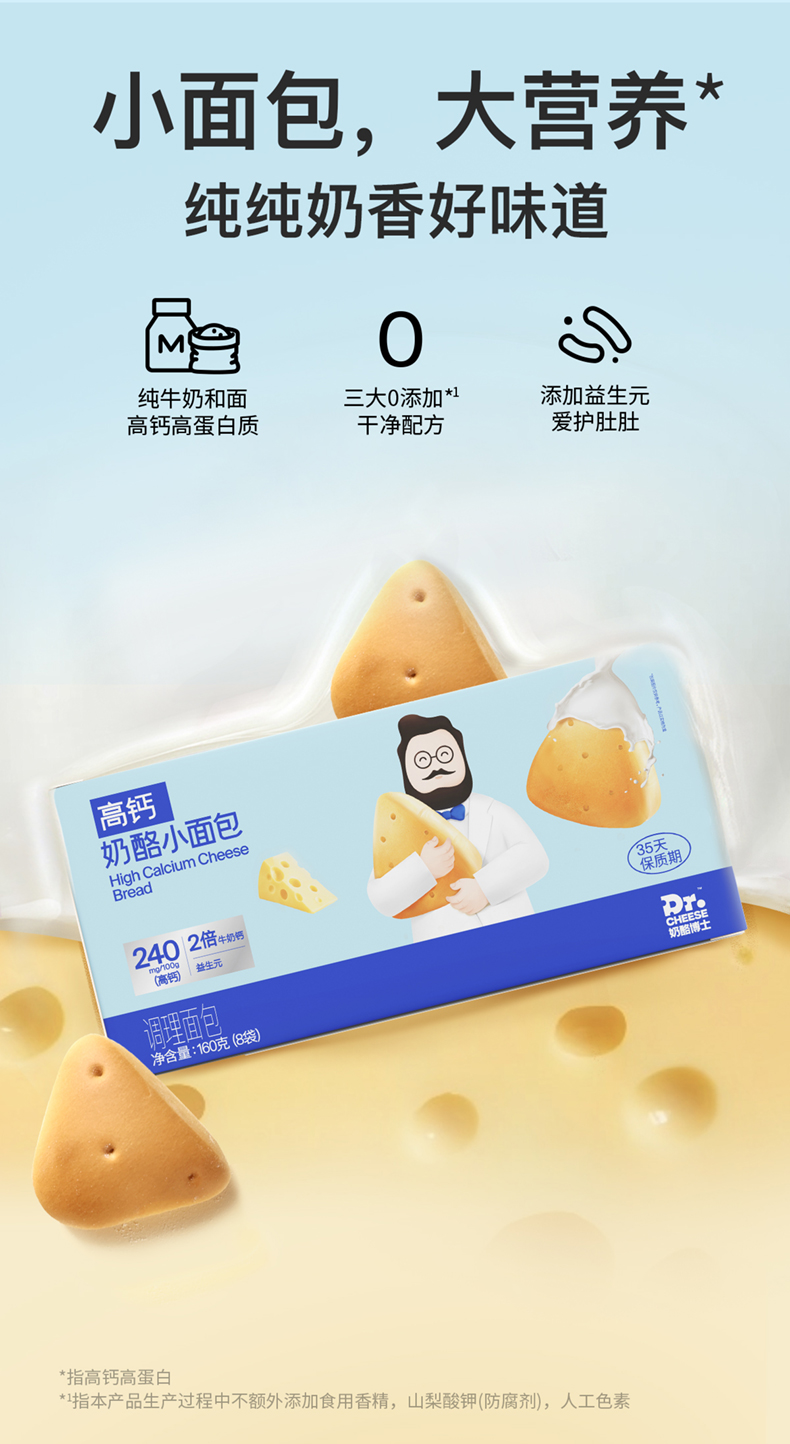 高钙奶酪儿童面包160g*1箱(短保35天)