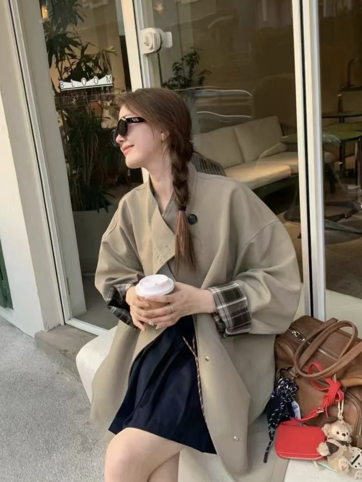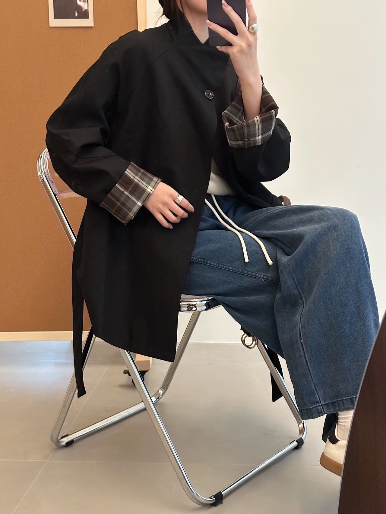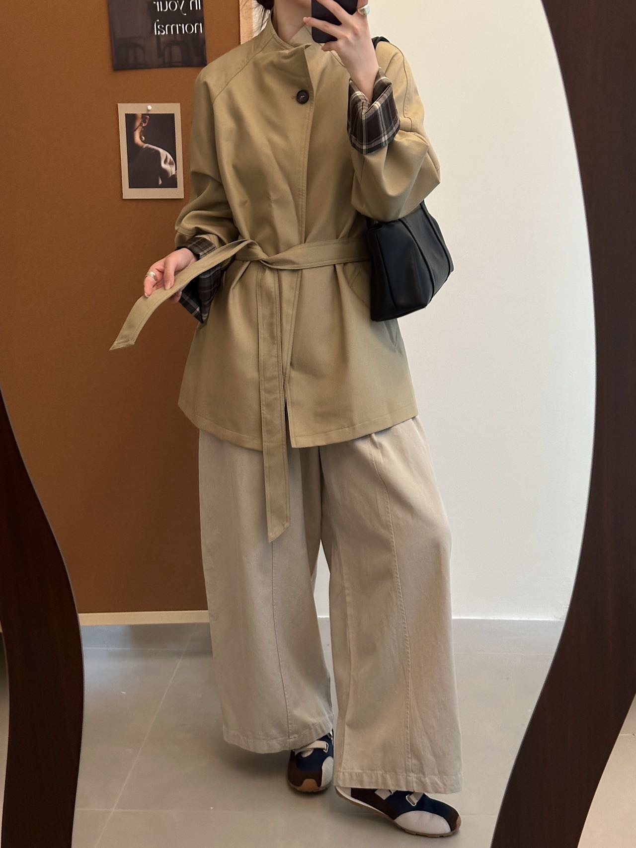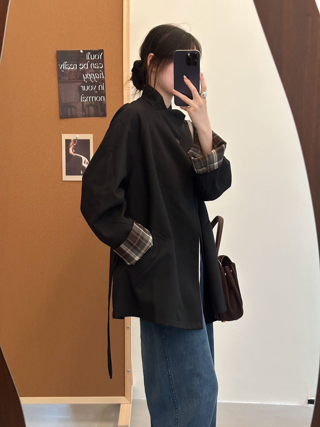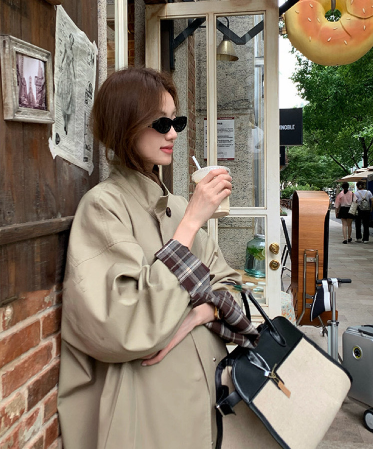 袖口撞色棕色格纹,松弛高级显高抬气质!