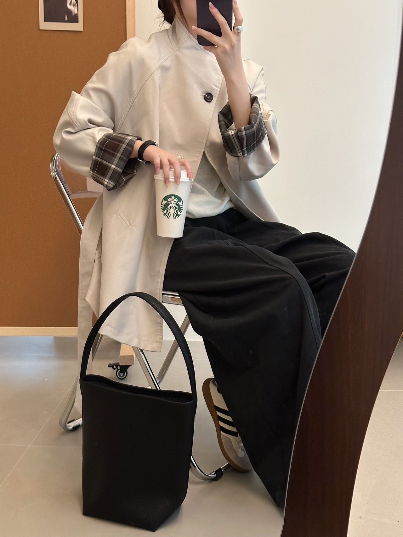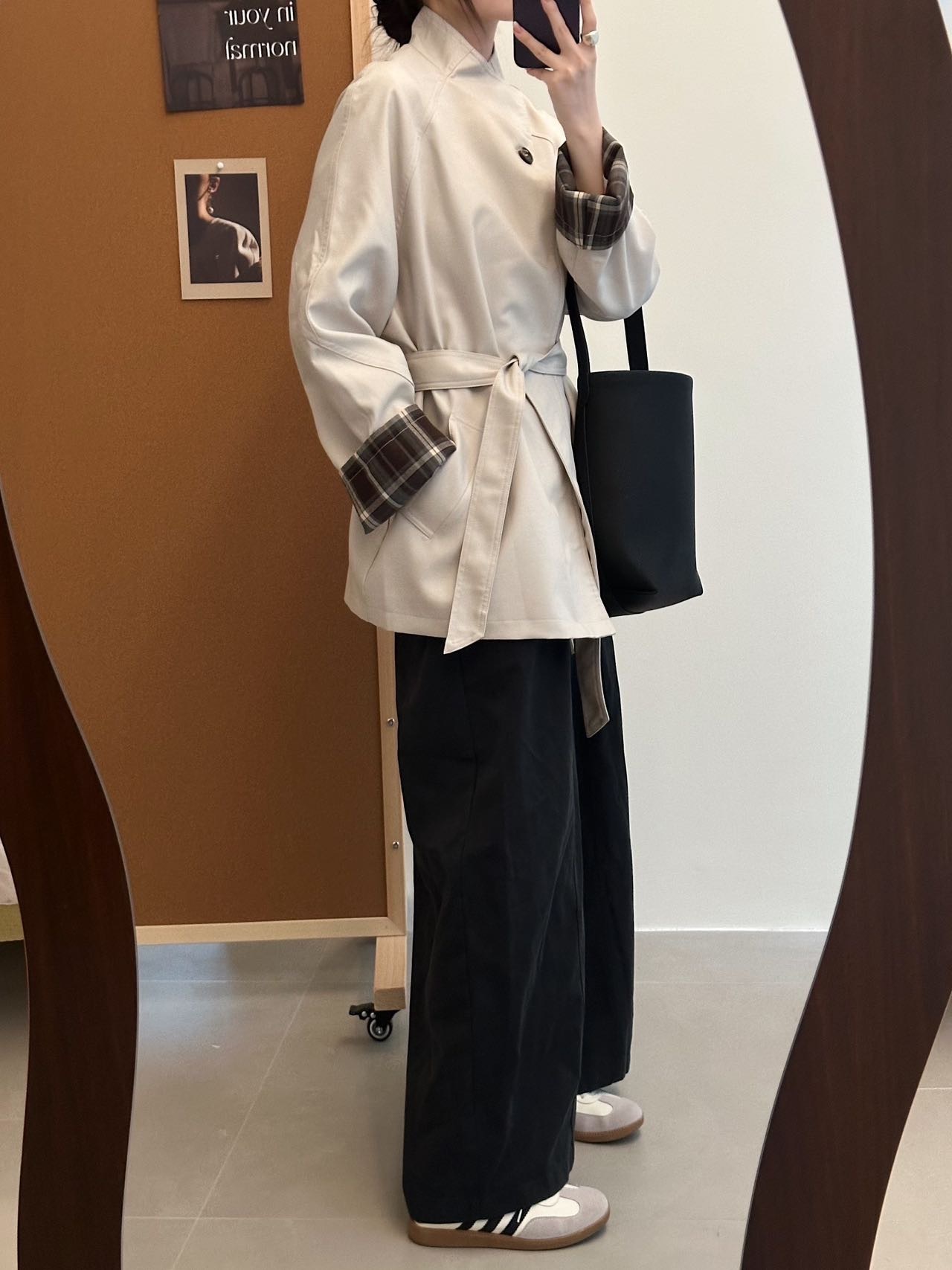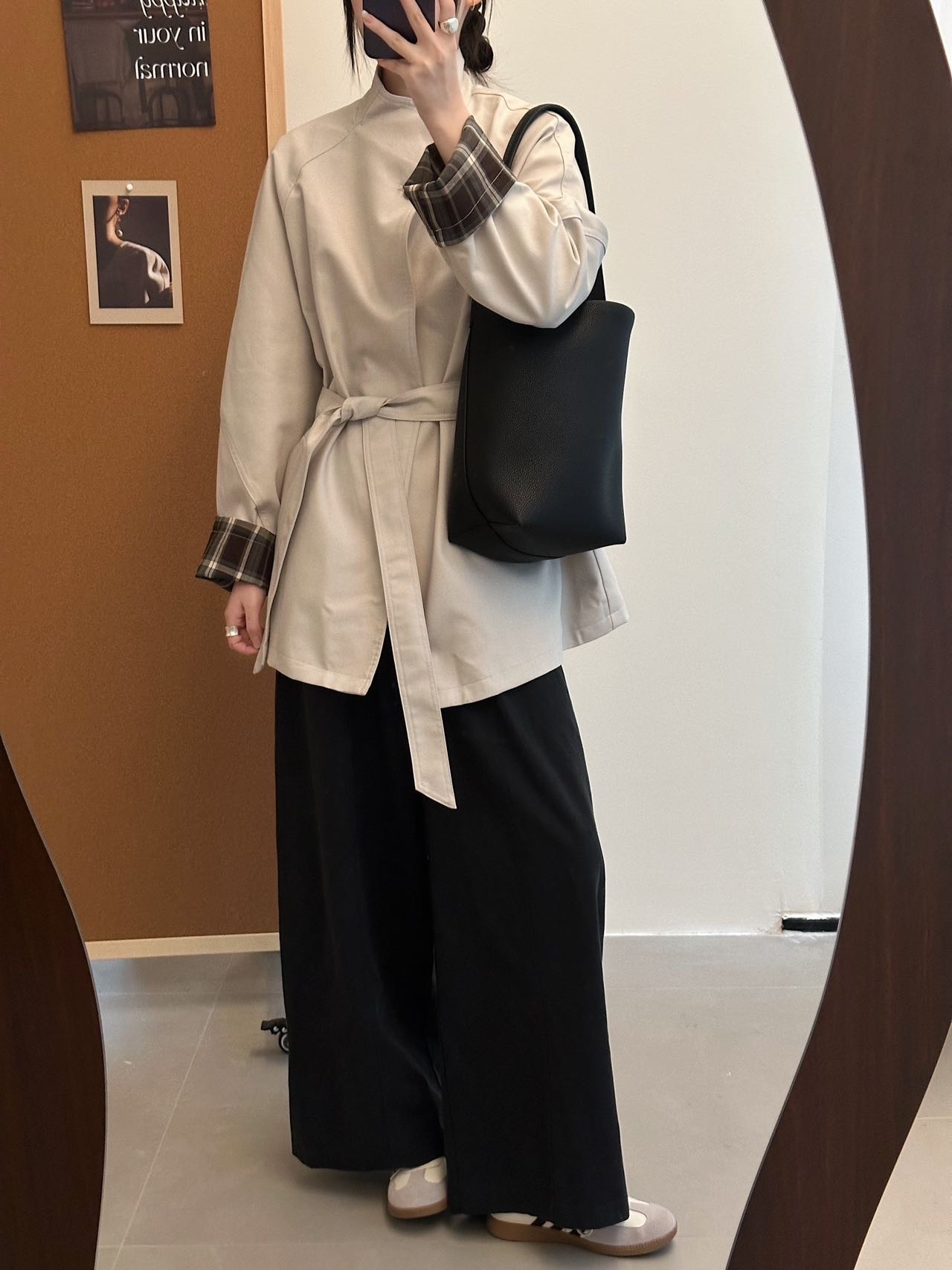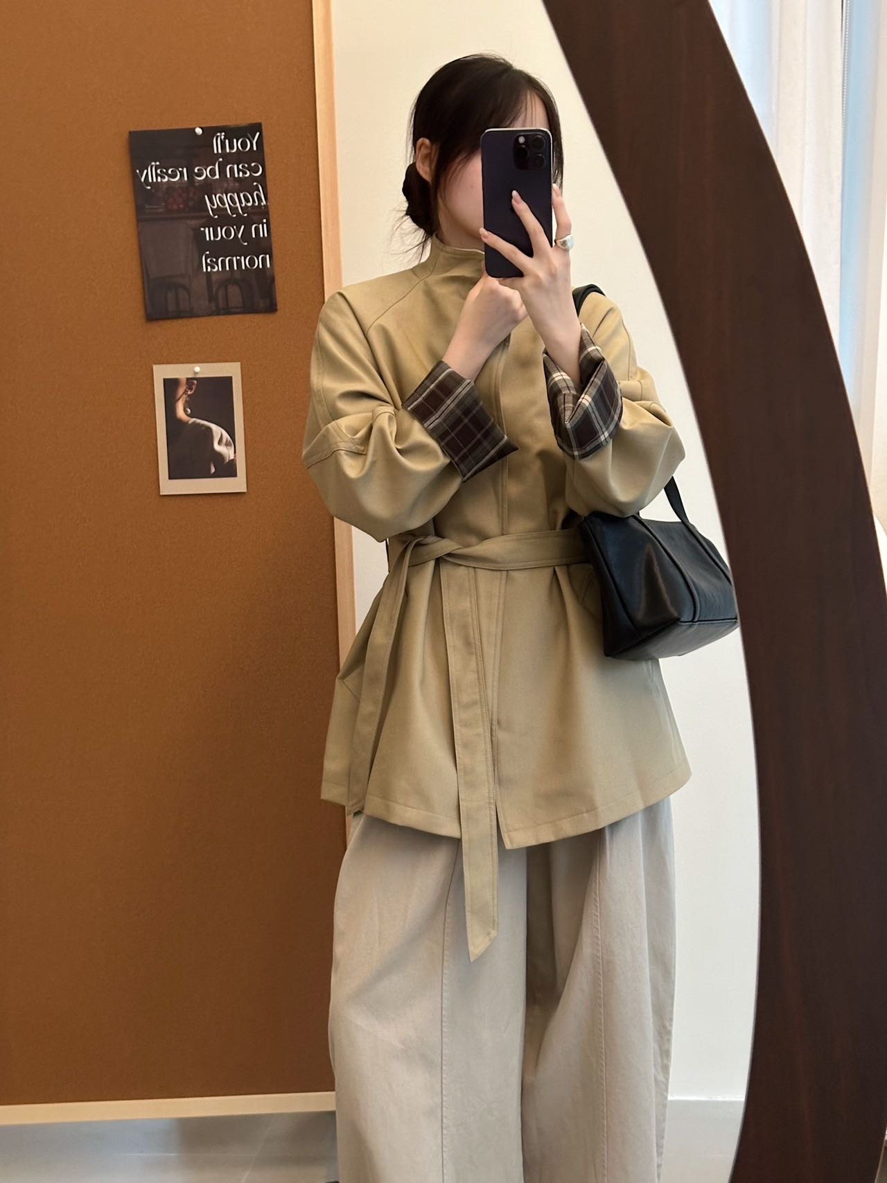 袖口撞色棕色格纹,松弛高级显高抬气质!