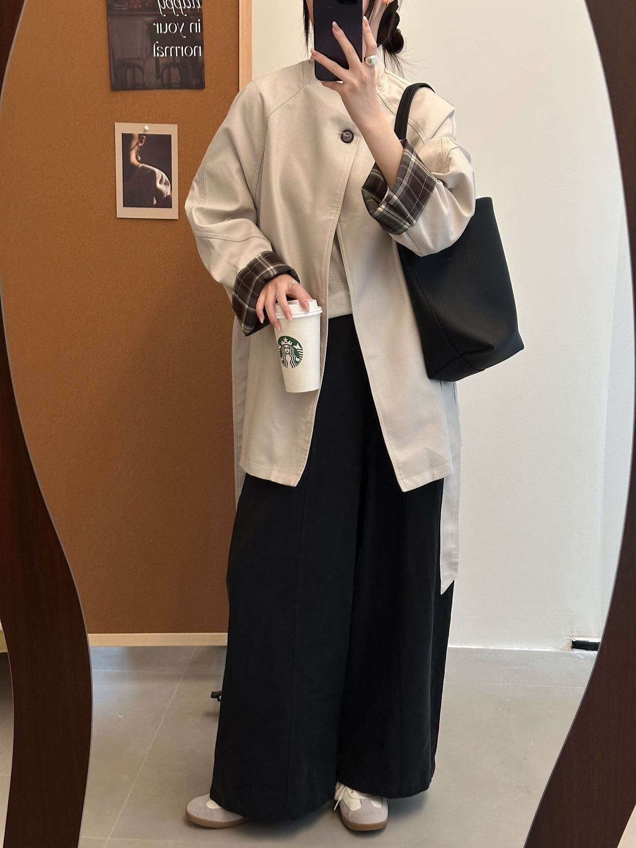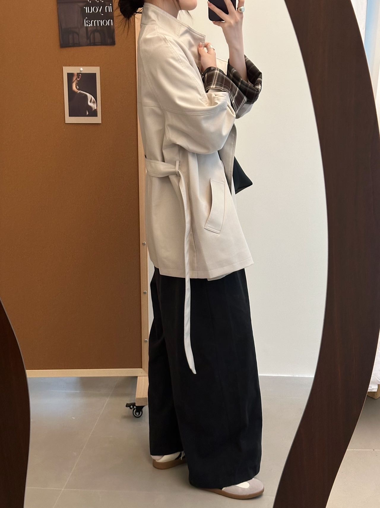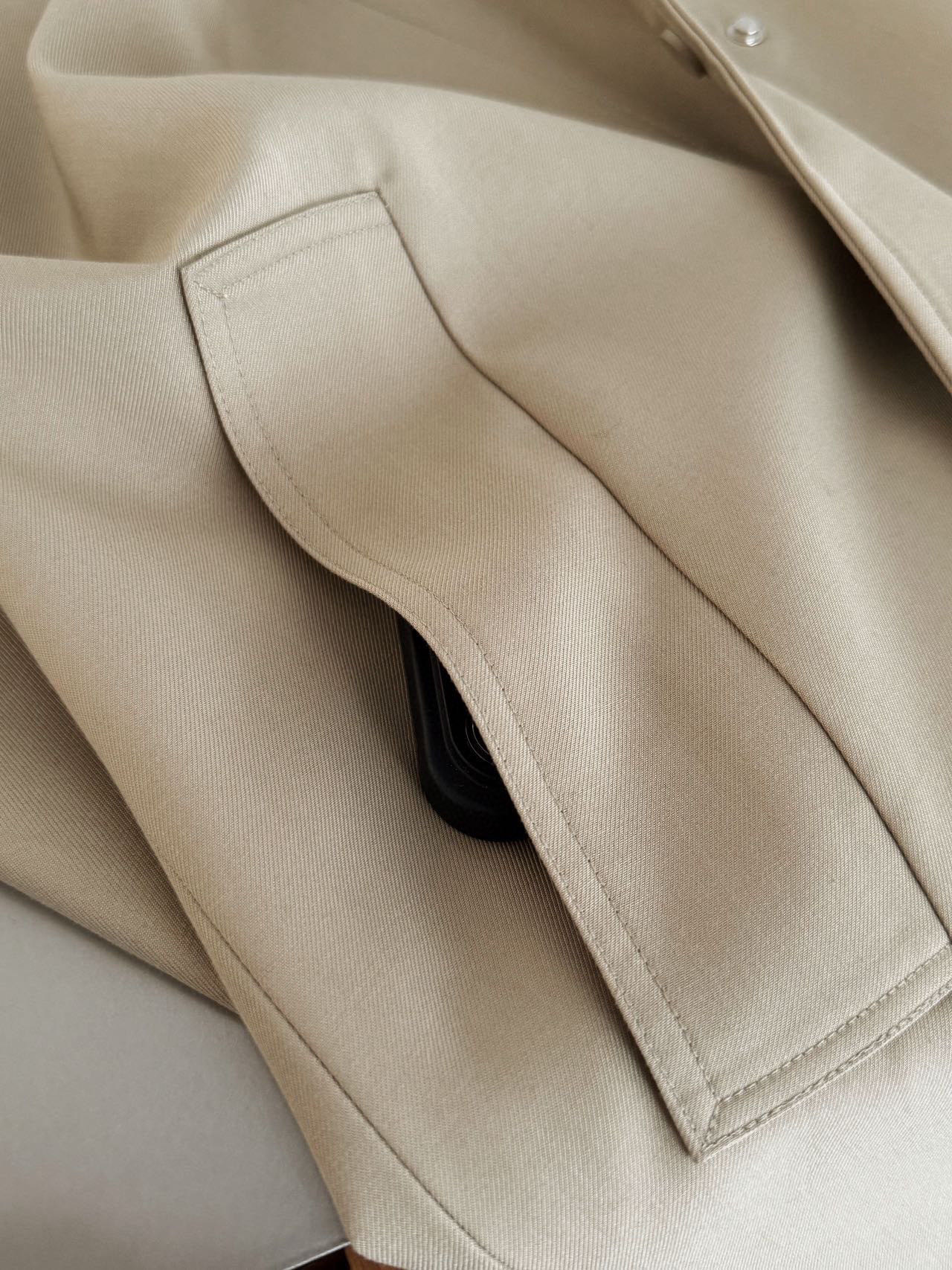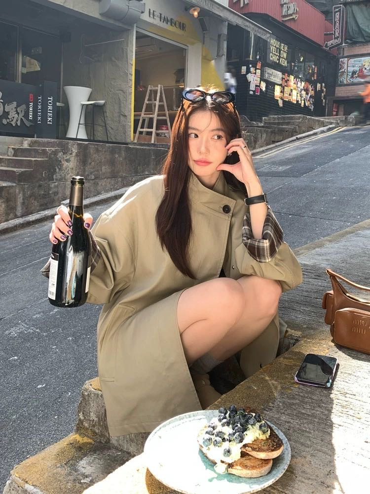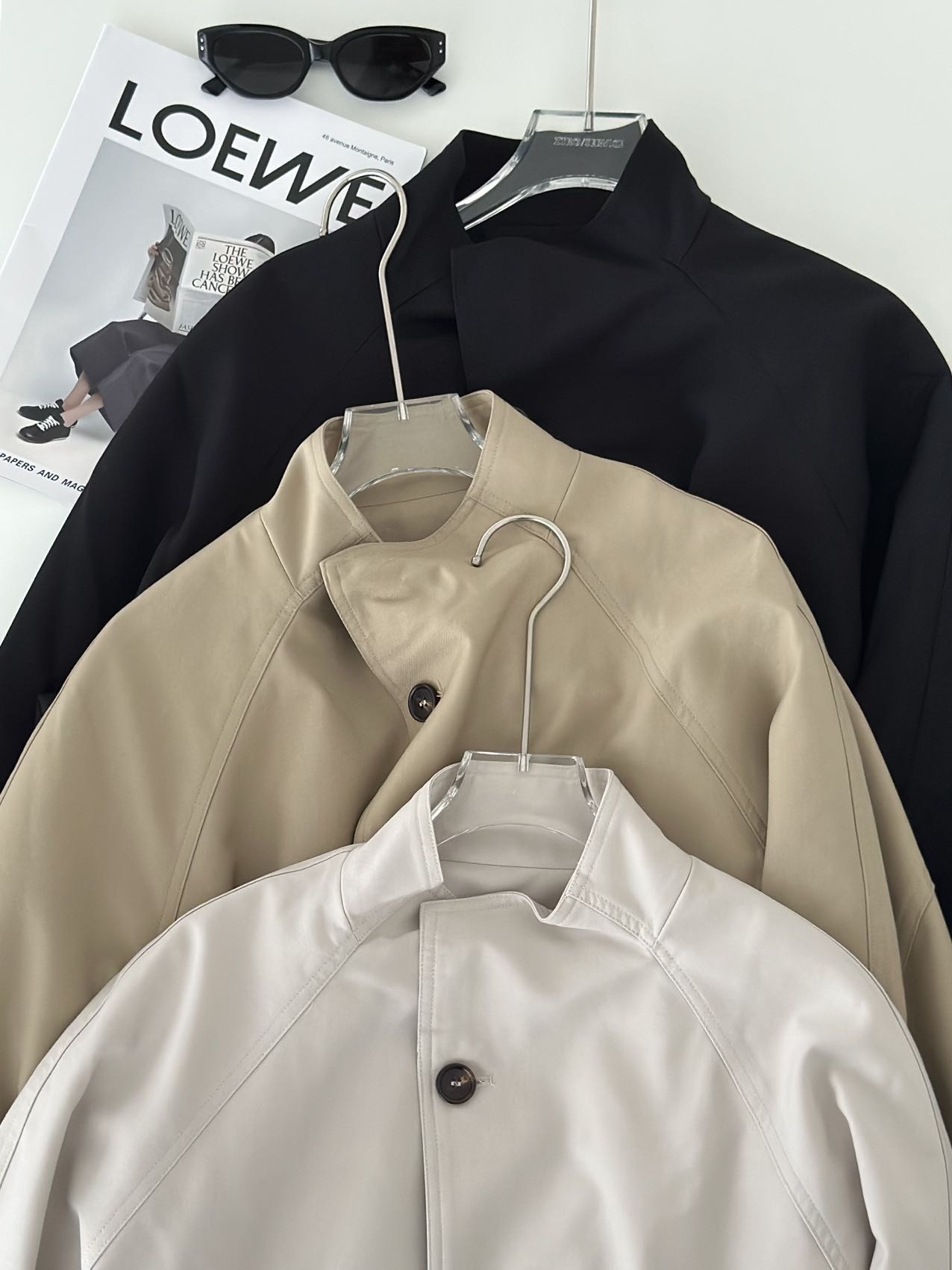 修饰肩颈线条,轻松打造直角肩~落肩设计慵懒松弛还不显肩宽,不显臃肿,经典A形廓形,恰到好处的中长款长度~