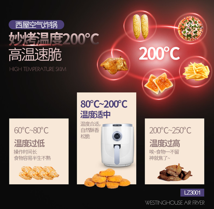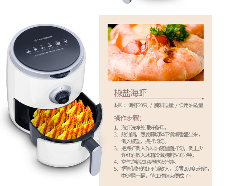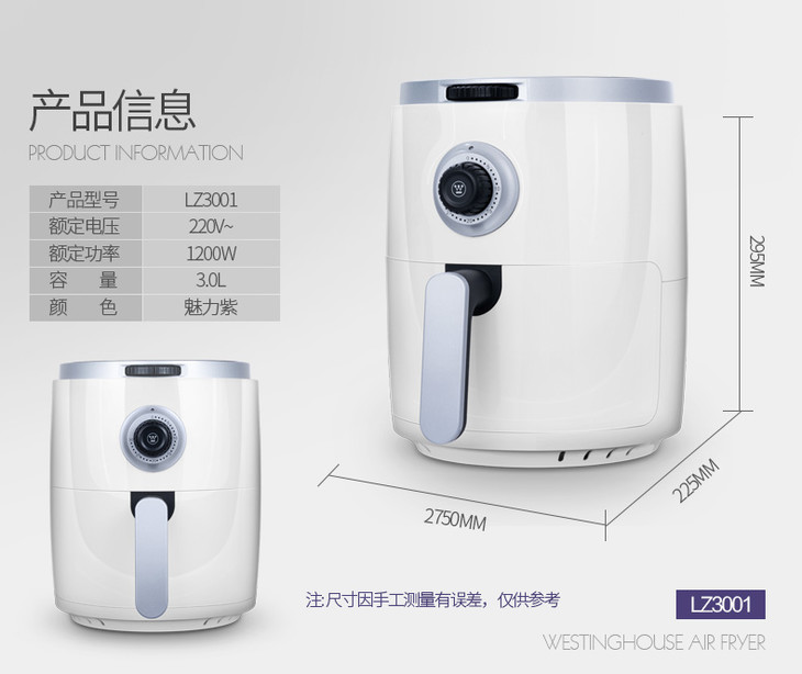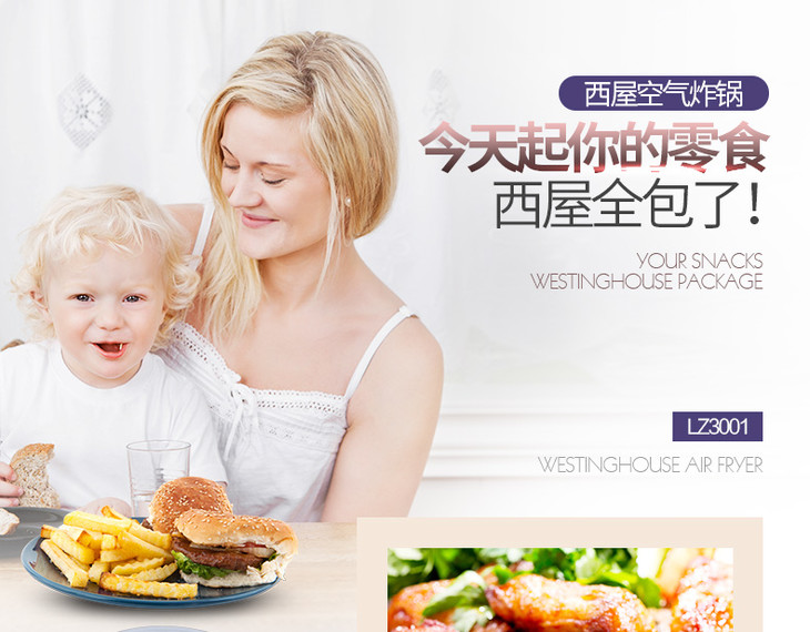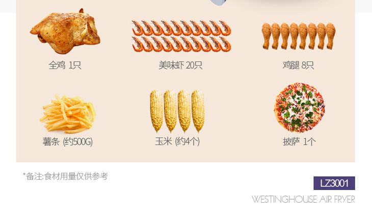 美国西屋LZ3001无油空气电炸锅家用全自动多功能大容量炸薯条鸡翅