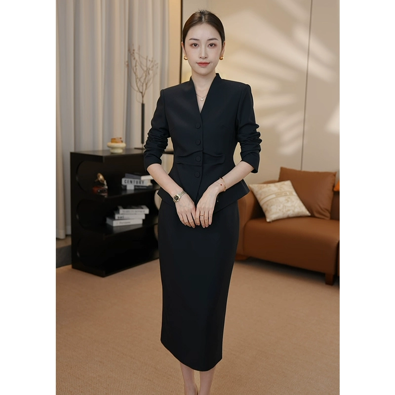 2024秋季新款安可拉红简约V领单排扣优雅西装半身裙两件套