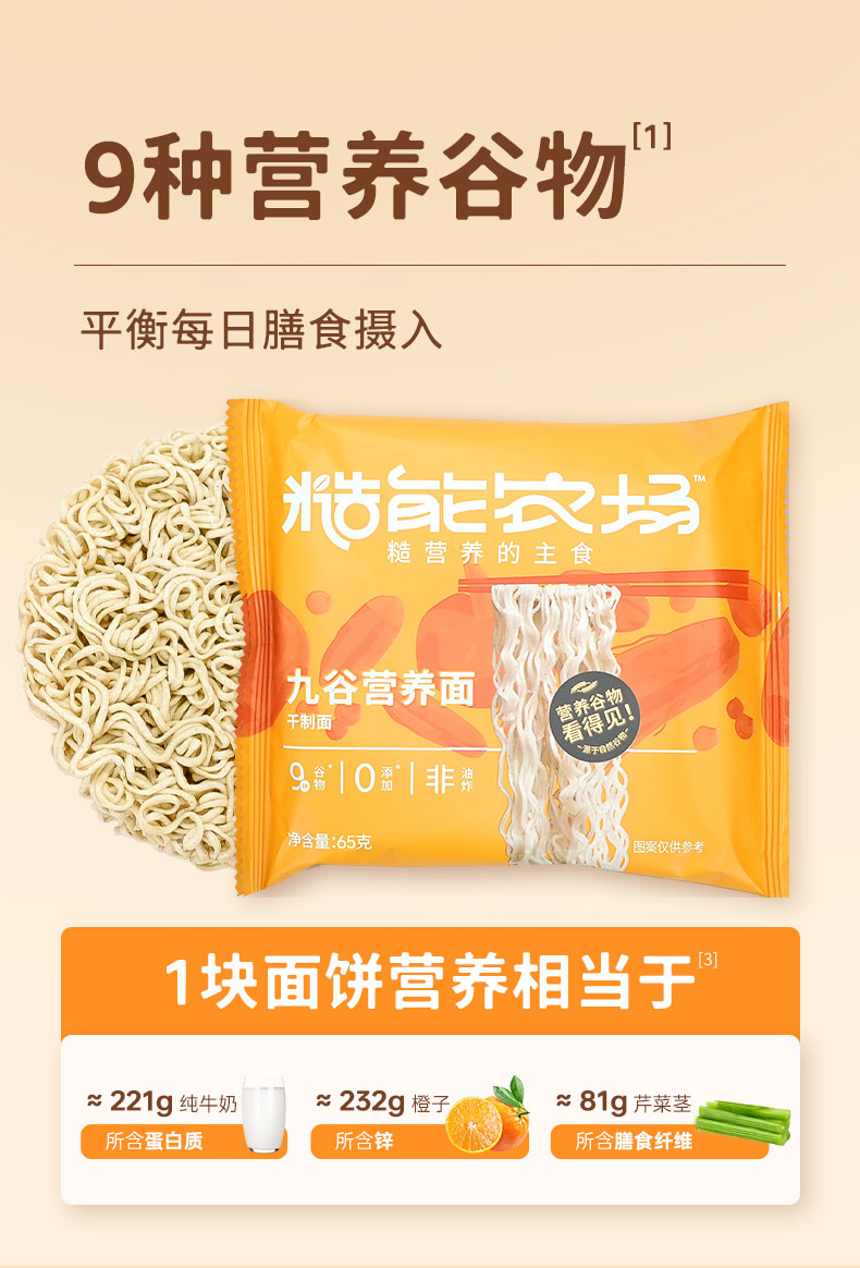 糙能农场九谷营养面干制面 非油炸 九种谷物均衡营养 安心鲜鸡蛋营养更全面 0添加好面